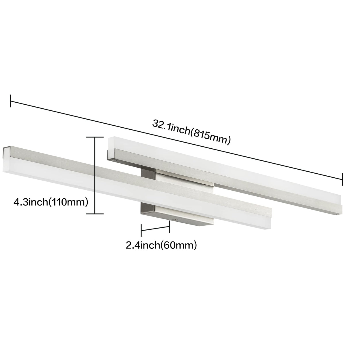 Presde Bathroom Vanity Light Dimmable 3 Colors Changeable 32In Modern Brushed Nickel Led Bathroom Light Fixtures Over Mirror Bat