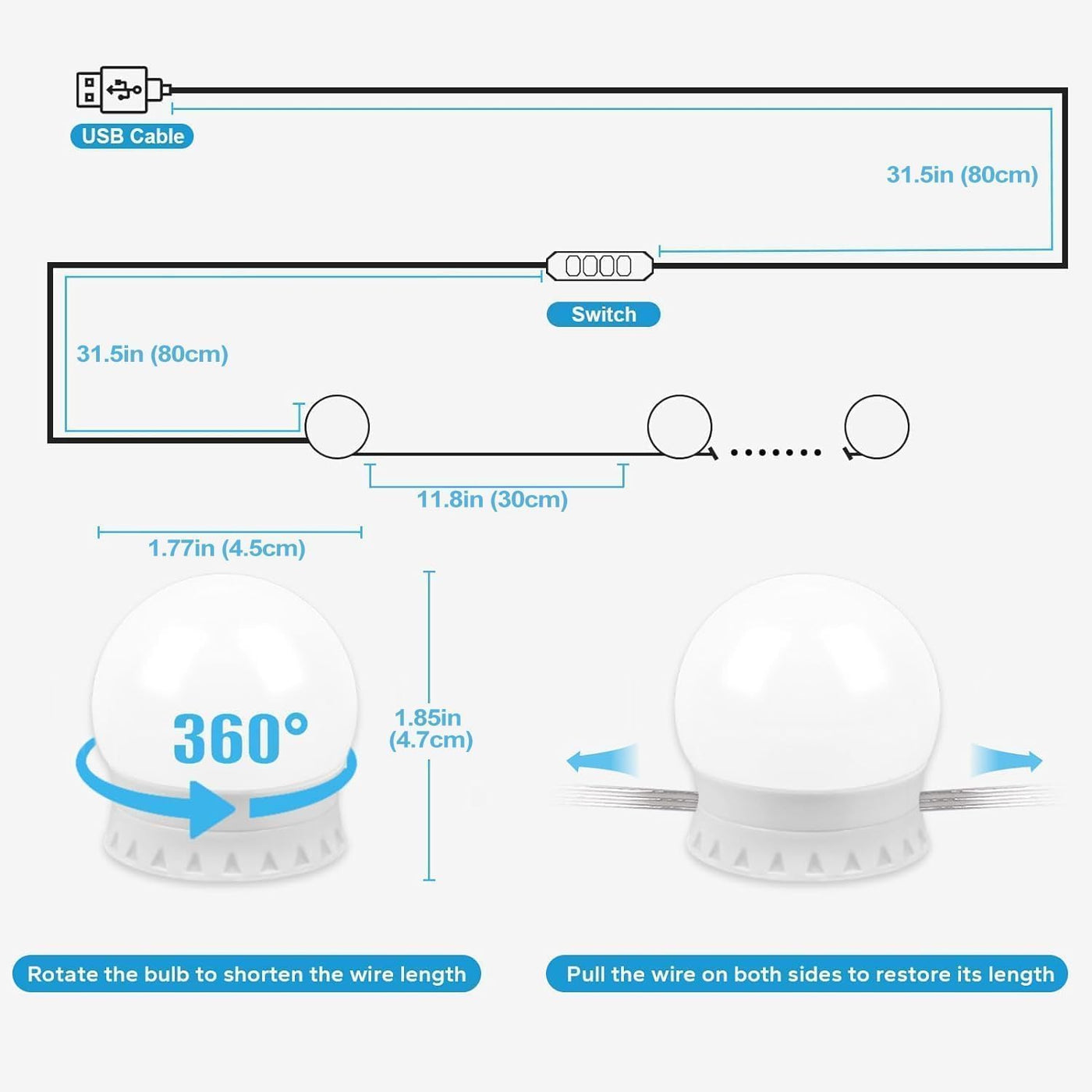 Pretmess Led Vanity Lights For Mirror, Hollywood Style Vanity Lights With 14 Dimmable Bulbs, Adjustable Color & Brightness, Usb