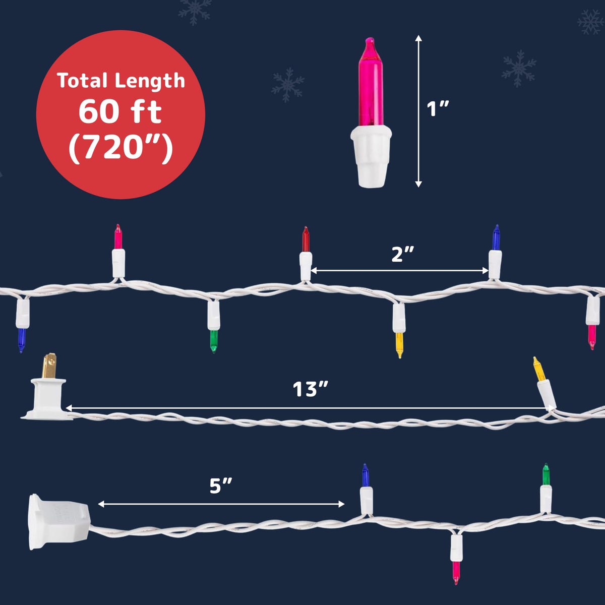 Includes 60 Feet Of 300 Multicolor Lights On White Wire.
