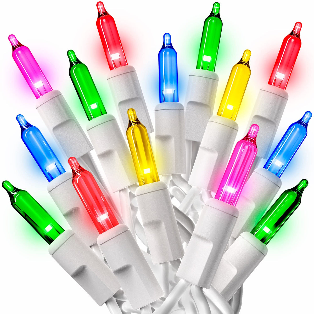 Prextex Christmas Lights - 300 Multicolor Twinkle Lights, 60 Feet Indoor/Outdoor String Lights With White Wire