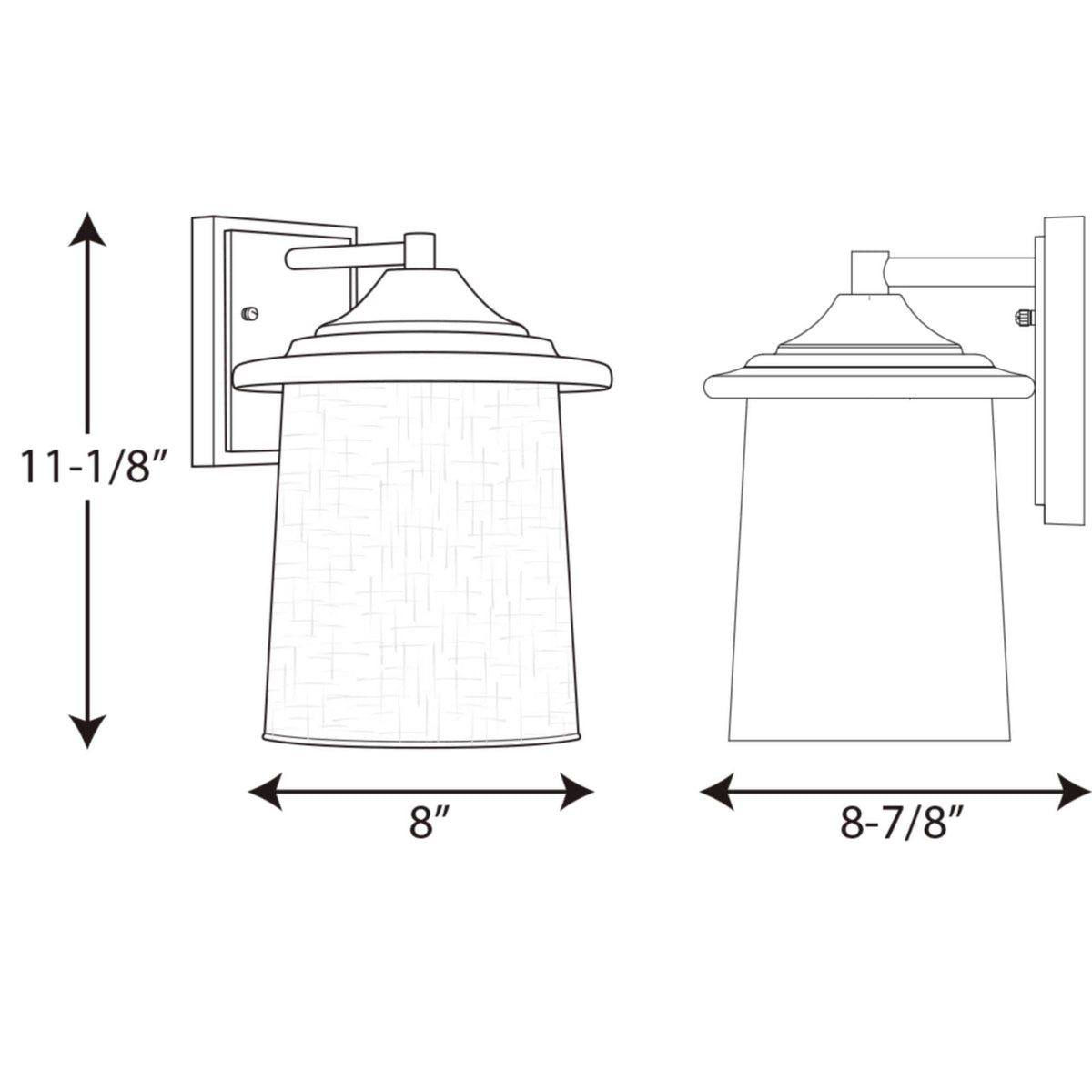 Q: What is the size and weight of the Progress Lighting Essential Collection 1-Light Wall Lantern?A: This wall lantern has a size of 8 inches and weighs approximately 2.33 pounds, making it a lightweight option for outdoor lighting.