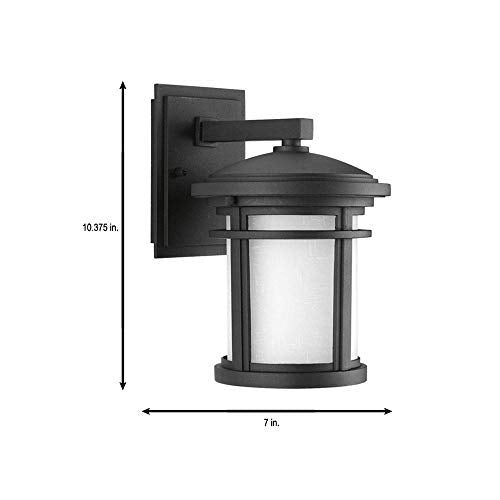 Progress Lighting 1-Light Outdoor Wall Lantern, Etched White Glass, Textured Black Finish