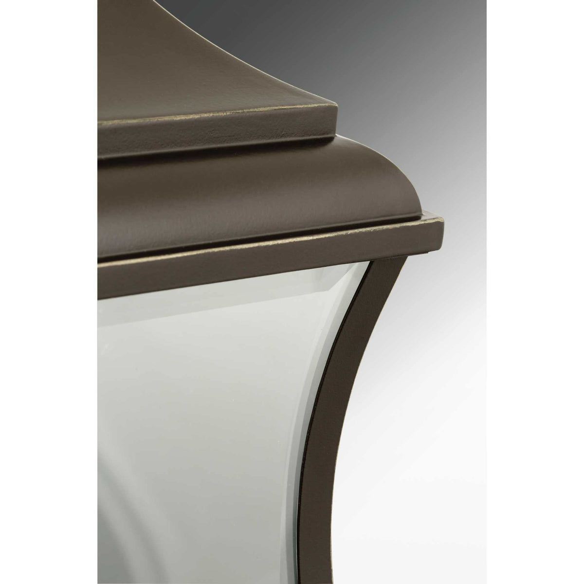 Q: What type of glass is used in the Progress Lighting Township Collection wall lantern?A: The wall lantern features clear beveled glass, which adds a touch of elegance and enhances the light output.