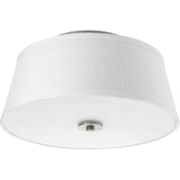 Manifest A Countryside Escape With The Simple Rustic Demeanor Of The Arden Collections Two-Light Flush Mount. A Crisp Summer Linen Shade With An Etched Glass Diffuser Takes Center Stage In This Design To Create A Gentle, Muted Glow. The Ceiling Light Is Anchored By A Beautiful Brushed Nickel Ceiling Plate Crafted From Over-Scaled Tubing. A Small Decorative Metal Knob Adorns The Bottom Of The Shade For A Pinch Of Modern Flair. For Optimal Illumination, The Flush Mount Uses Two Medium Base Bulbs That Are Sold Separately (60W Max - Led, Cfl, Halogen, Or Incandescent). With The Ability To Be Fully Dimmable With Dimmable Bulbs, The Light Fixture Offers Endless Versatility When It Comes To Finding A Place In Your Home D Cor Vision. The Flush Mounts Country Design Is Ideal For Any Hallway, Stairway, Foyer, Or Sitting Room In Transitional, Modern, Farmhouse, Or Rustic Settings. Its Time To Breathe New Life Into The Mundane Every Day With Timeless And Truly Transformative Bathroom Lighting. Make Your Purchase Today To Begin Your Journey To A Whole New Lighting Experience. Progress Lighting Products Are Designed For Exceptional Quality, Reliability, And Functionality.