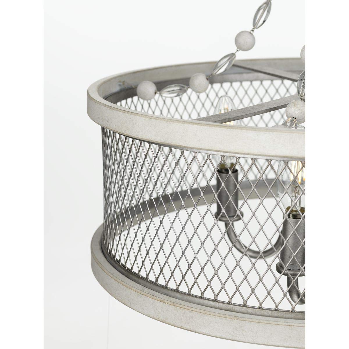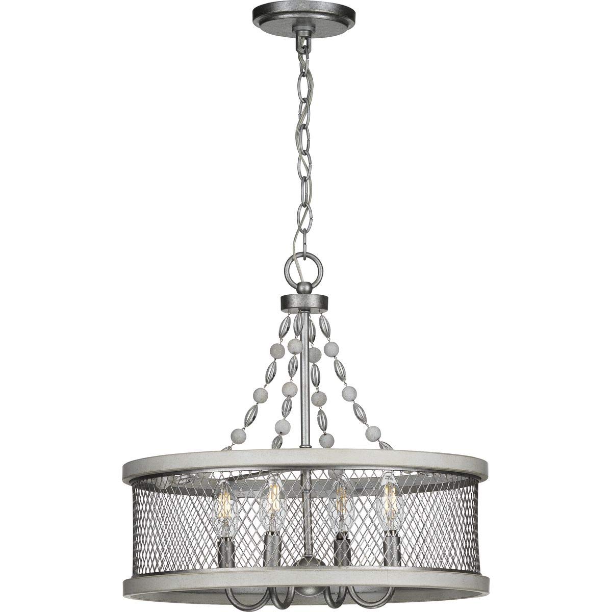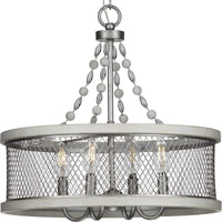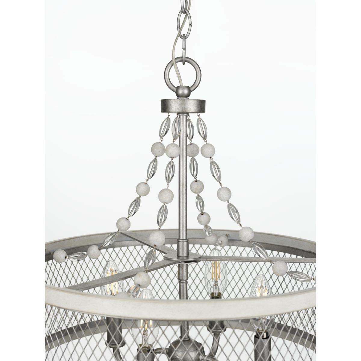 Your Home Will Exude Comfort And Sophistication With The Graceful Austelle Collection Four-Light Galvanized Chandelier. A Breathtaking Mesh Shade Accented By A Gorgeous Galvanized Finish Takes Center Stage In This Design. Decorative Wooden Beads String Down From The Center Column To Add A Pinch Of Chic Flair As Light Sockets With Curved Arms Peak From Within The Shade'S Embrace.