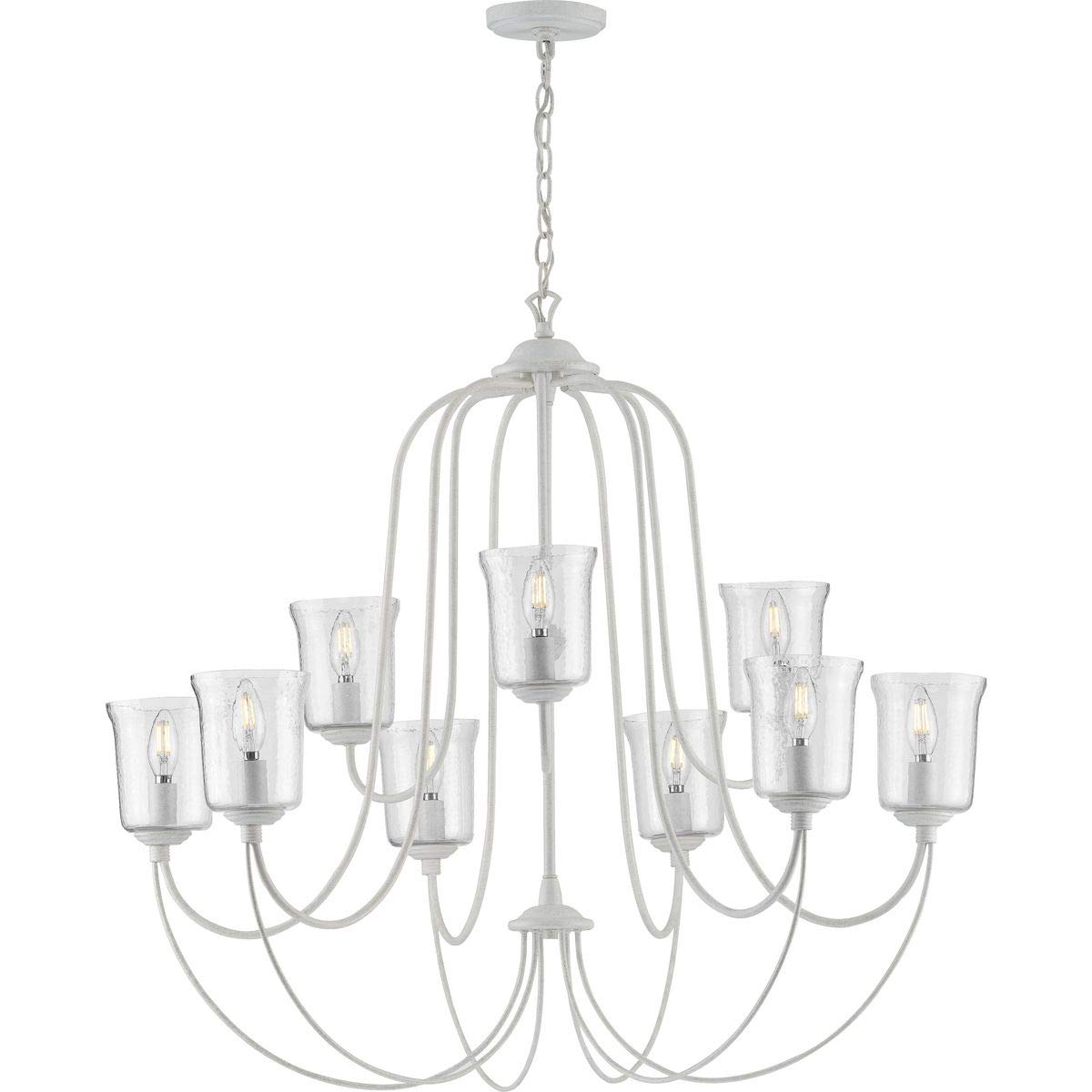 Beautiful Lighting Will Appeal To Both Your Classic Taste And Your Artistic Spirit With This Chandelier. Wandering Eyes Will Focus On Clear, Chiseled Glass Shades As They Offer An Air Of Refinery. Handsome Light Bases With Dainty, Sophisticated Curved Arms Support Elegant Light Bases. The Frame Is Coated In A Classic Cottage White Finish To Complete The Versatile, Eye-Catching Design.
