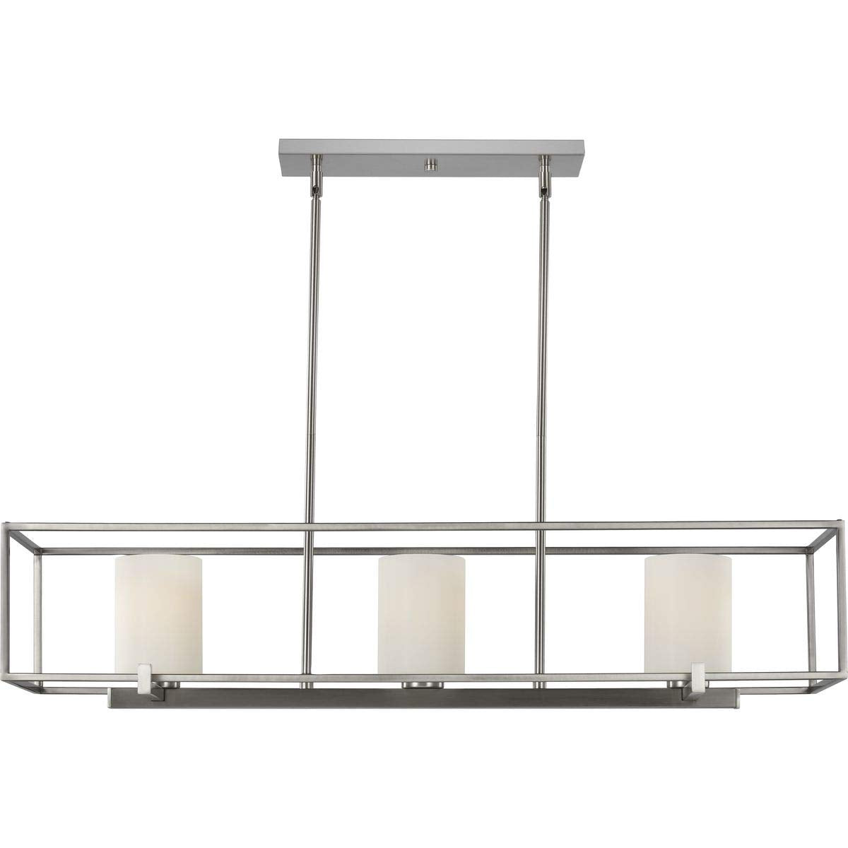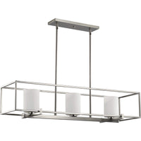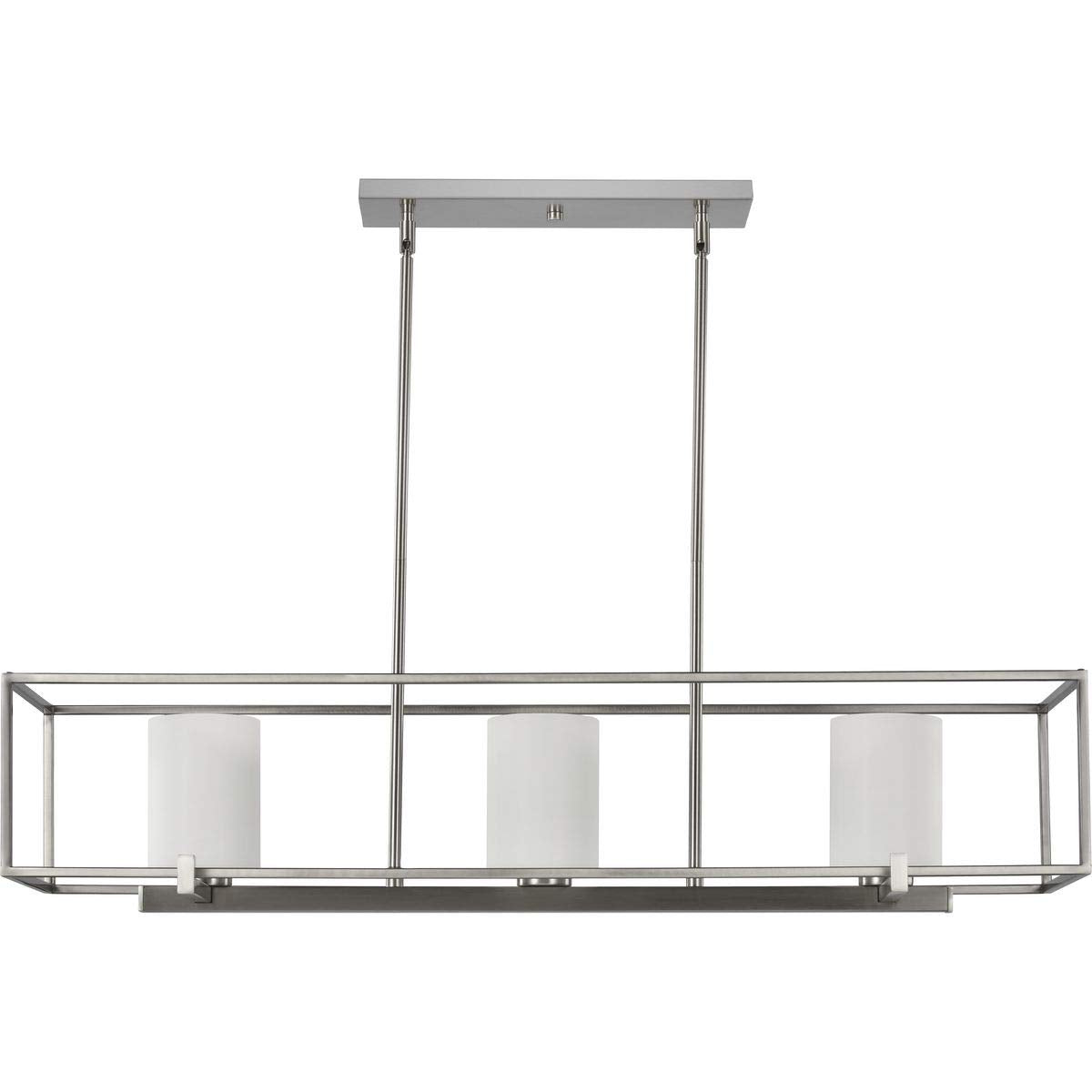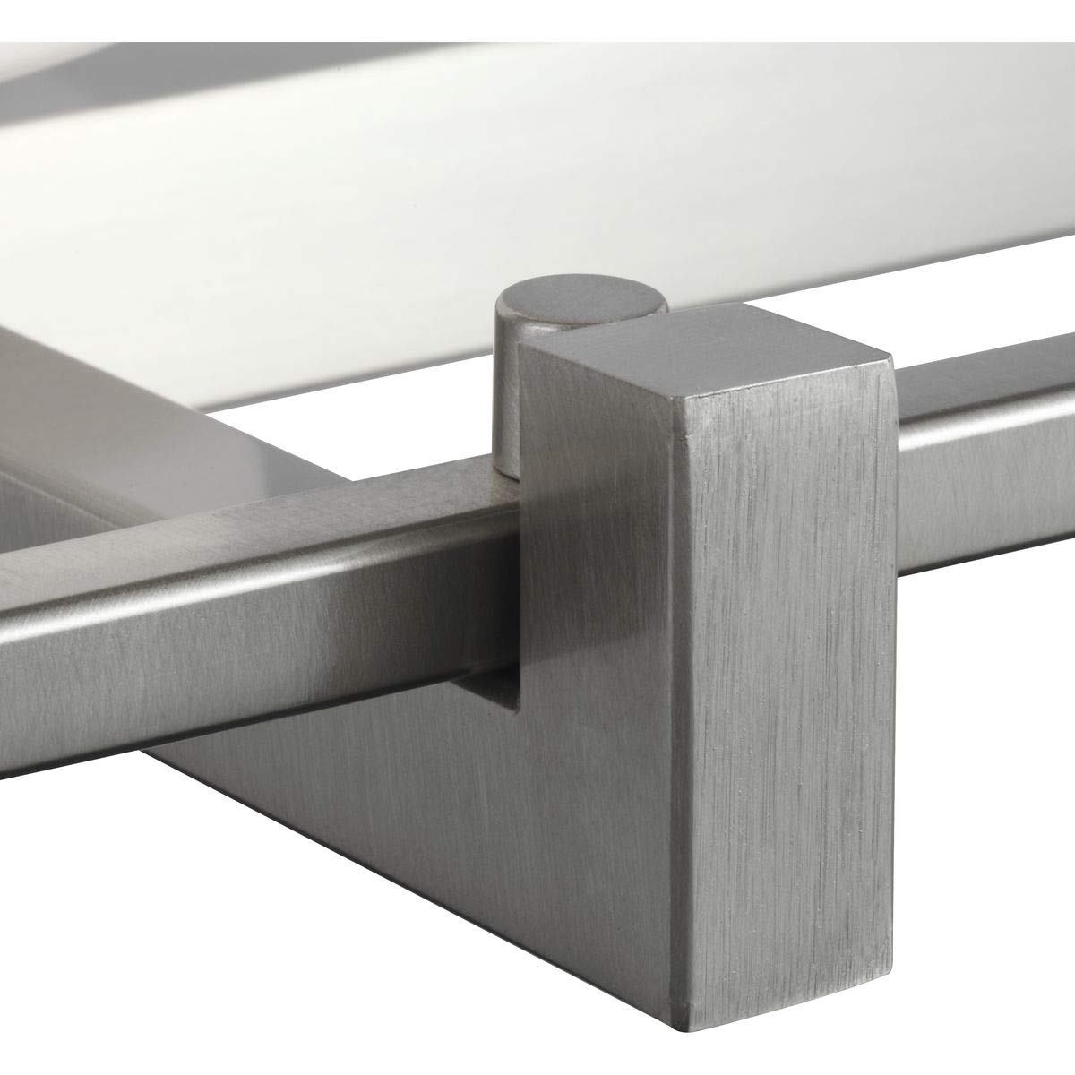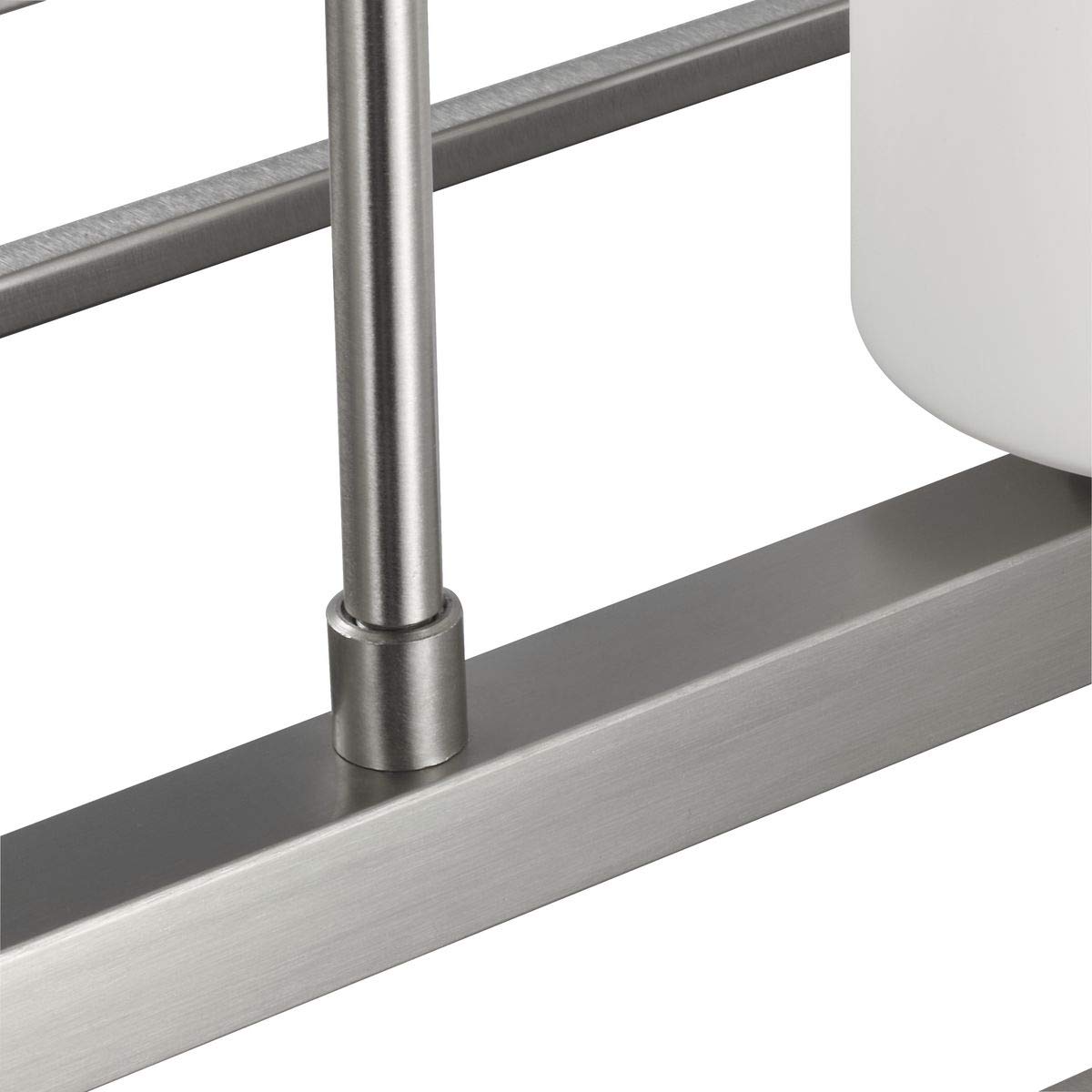 Stick with simple geometric forms and clean crisp lines with this modern wall bracket. Beautiful opal glass shades visually calm the sharp edges of the boxy frame in a masterful stroke of design excellence. The frame is coated in a classic brushed nickel finish that contrasts the light shades. The light fixture is just right for spaces in need of a subtle, feminine touch.