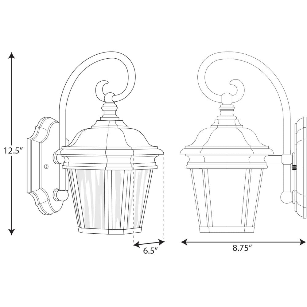 Q: What is the size of the Progress Lighting Crawford Collection Wall Lantern?A: The Progress Lighting Crawford Collection Wall Lantern has dimensions of 12.50 inches in height, 6.50 inches in width, and 6.50 inches in depth, making it a compact and stylish addition to your outdoor space.