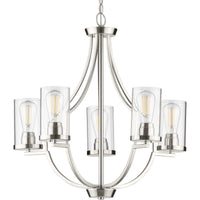 Manifest A Swoon-Worthy Lighting Experience With The Stunning Blend Of The Modern And Traditional Styles In This One-Of-A-Kind Chandelier. Square Tubing With Clean, Sharp Angles Is Coated In A Beautiful Brushed Nickel Finish That Demands Your Attention. Striking Vintage Light Sockets Boast Their Bold Yet Simple Demeanor As They Hold Clear Glass Shades To Complete This Statement-Making Light Fixture.