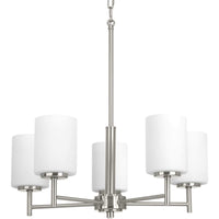 Progress Lighting P4319-09 Replay Collection Etched White Glass Modern Chandelier Light, 5-Light, Brushed Nickel