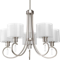 Progress Lighting P4696-09 Invite 5-Lt. Chandelier With White Silk Mylar Shades, Brushed Nickel