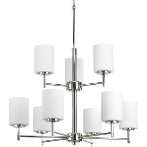 Progress Lighting P4726-104 Replay Collection Etched White Glass Modern Chandelier Light, 9-Light, Polished Nickel