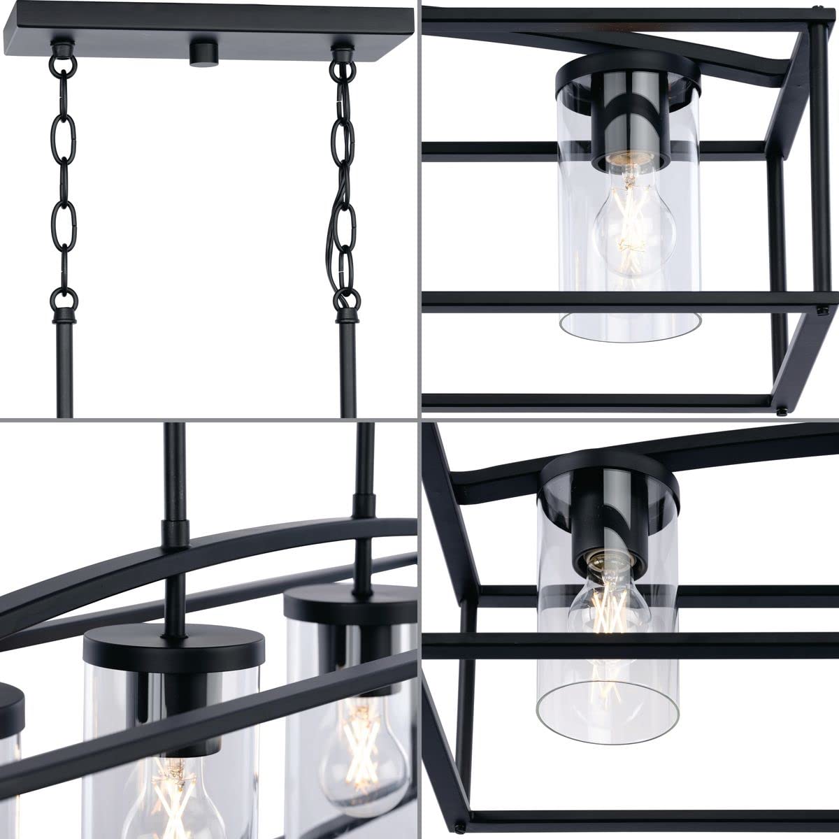 The Swansea Outdoor Living Island Chandelier Is Distinguished By The Swansea Outdoor Collection Is Distinguished By Strong Geometric Lines Finished In Modern Black To Create An Open, Minimalist Frame. Crisp, Clear Glass Shades Enclose Elegant Lights, Protecting Them From The Elements. To Create An Open, Minimalist Frame. A Arched Top Gives The Airy Frame Added Dimension. Four Crisp, Clear Glass Shades Direct The Light Downward Onto The Surface Below. The Shades Are Closed On Top To Protect The Elegant Lights From The Elements. The Openness Of The Design Delivers Unobstructed Layers Of Soft Illumination To Brighten Outdoor Spaces.