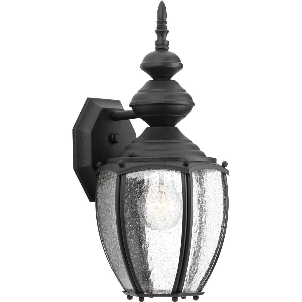 Q: What type of light bulb does the Progress Lighting P5765-31 use?A: The Progress Lighting P5765-31 typically uses a standard medium base bulb (not included), allowing you to choose the perfect brightness and style for your outdoor space.