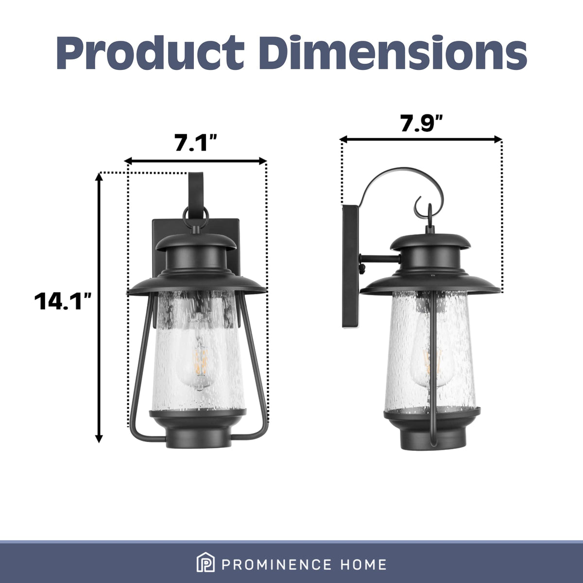 Create a warm and welcoming glow on your front porch or back patio with this stunning outdoor wall sconce from Prominence Home. This wet-rated coach light combines functionality with vintage charm, making it the perfect addition to your outdoor living space. The lantern-inspired design features clear seeded glass that not only illuminates your surroundings beautifully but also enhances the overall aesthetic of your home.