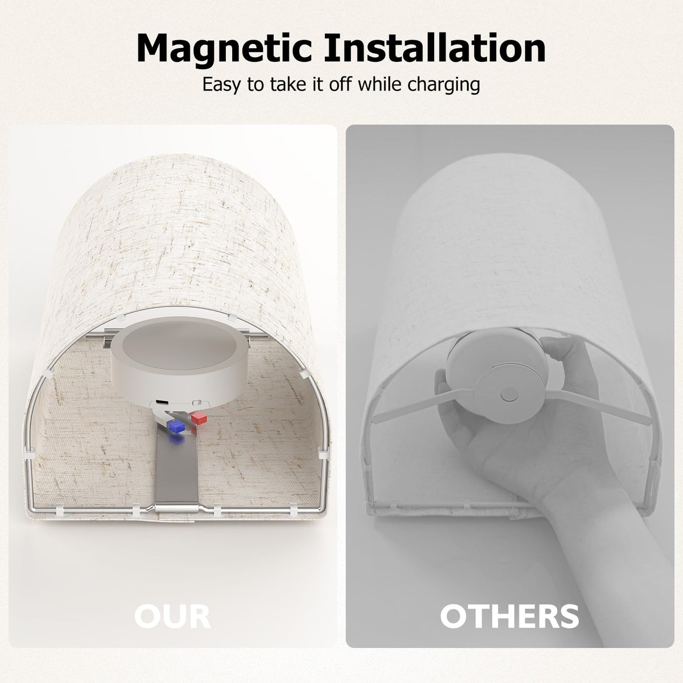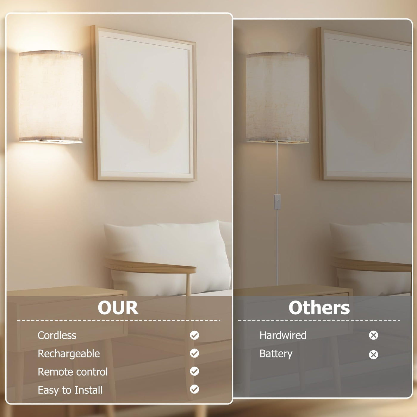 These battery-operated wall sconces are made of metal and fabric, with an electroplated finish, making them strong, durable, and stylish. The lampshade is made of high-quality linen fabric, with an elegant appearance. The wall light is designed with a touch switch on the lamp body, which is easy to use. The remote control is powered by 2 x AAA batteries (not included), and the light color can be adjusted by remote control. The remote control distance is about 16.4 feet, and the light can be adjusted to 3 different light colors: warm white, natural white, and warm yellow. The wall light is perfect for bedroom, living room, stairs, hallway, and other places.