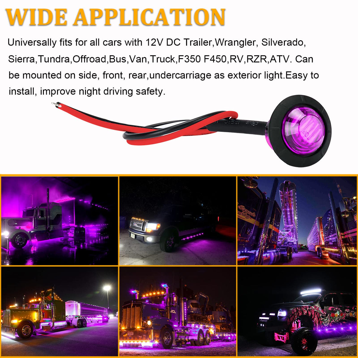 Pseqt 3/4" Led Rock Lights Round Underglow Side Marker Clearance Wheel Fender Light W/Bullet Grommet Waterproof For Trailer Pickup Truck Golf Cart Offroad Wrangler Rv Utv Atv (Purple 10Pcs)