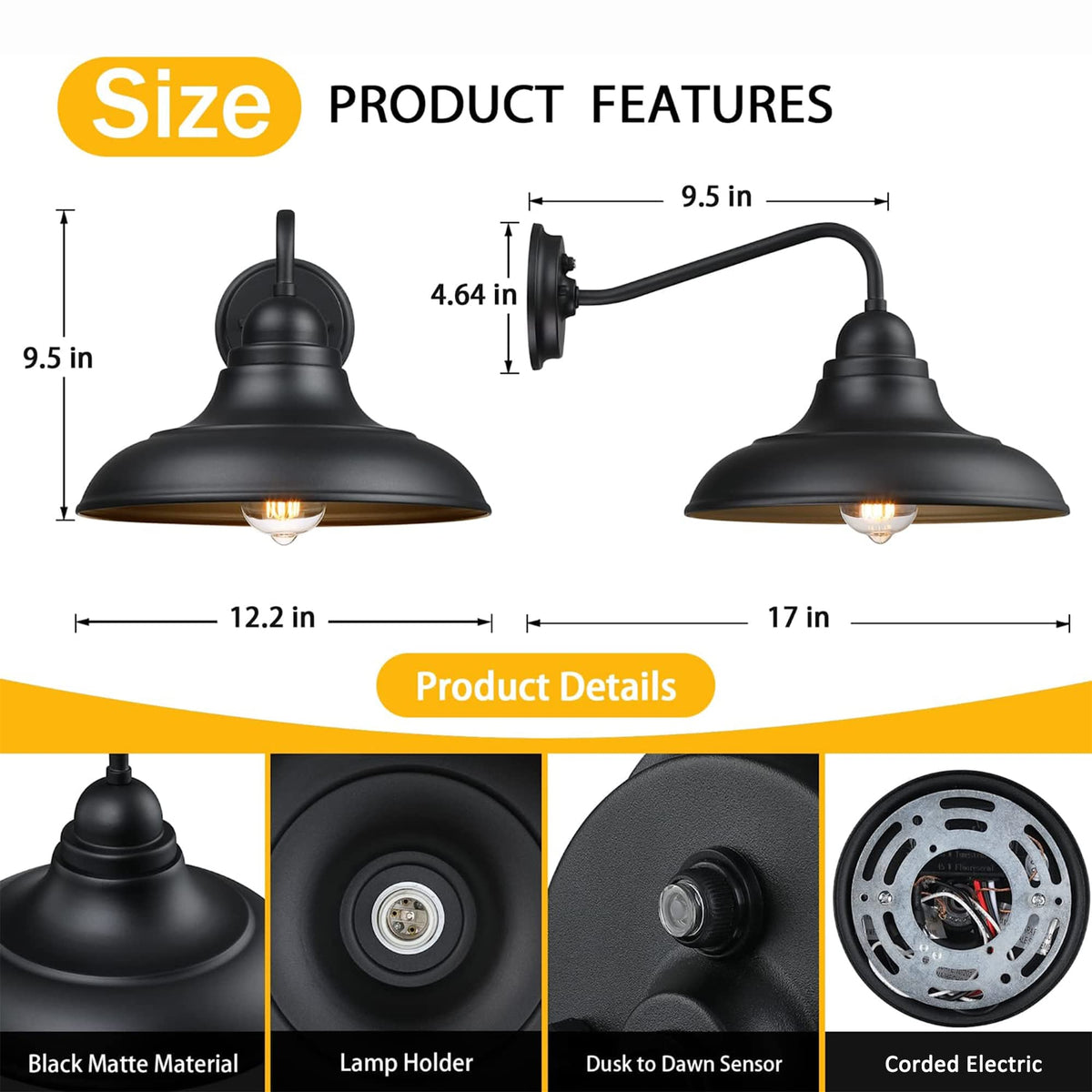 - **Elegant Design for Versatile Use**: The simple yet elegant design of these barn lights makes them suitable for various outdoor applications, including patios, porches, gardens, and entryways. Their classic style complements any decor, enhancing the charm of your home.