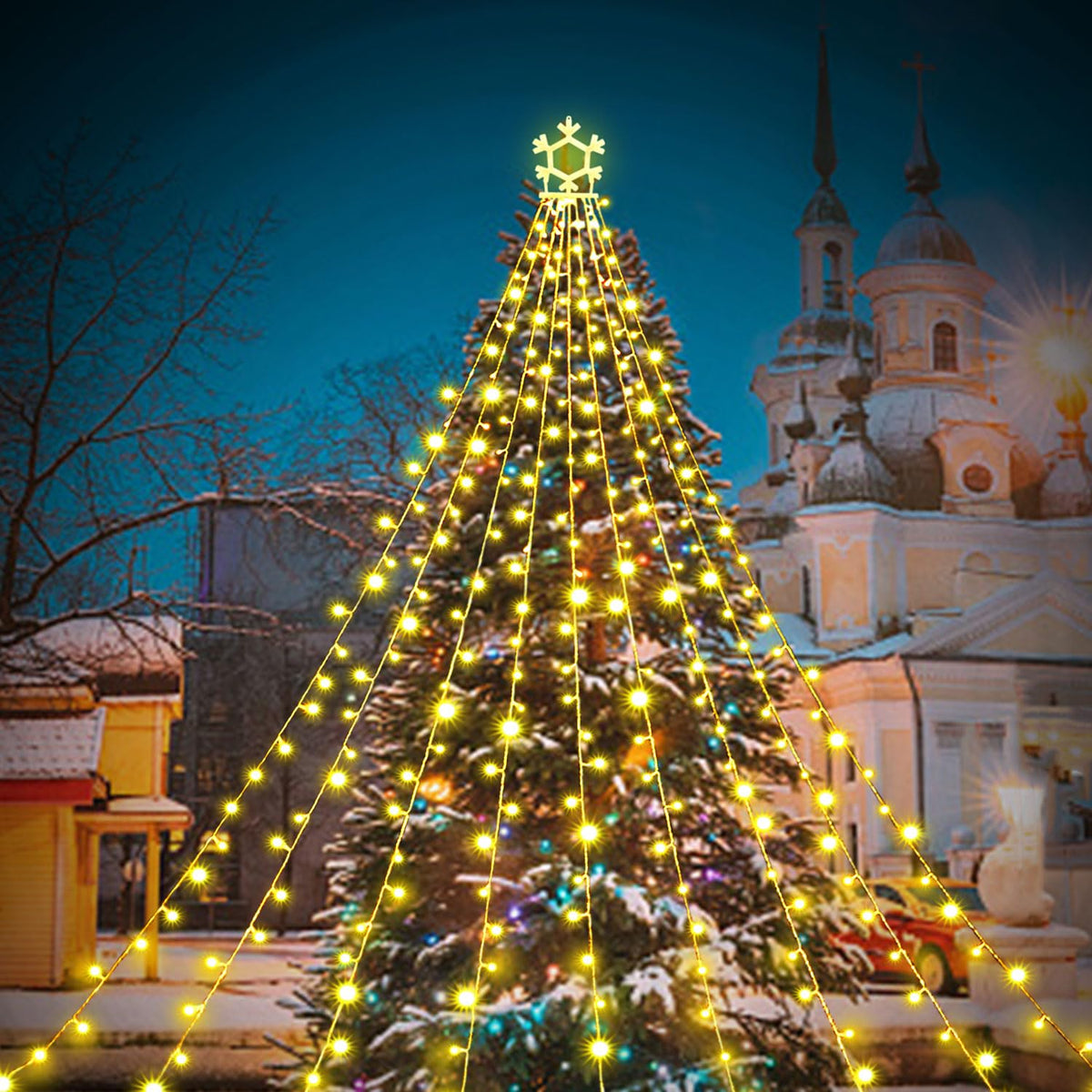 - **Stunning Design**: Features a large snowflake tree topper measuring 11 inches in diameter, complemented by 9 string lights each measuring 11.4 feet long, creating a dazzling display that can be seen from afar.
