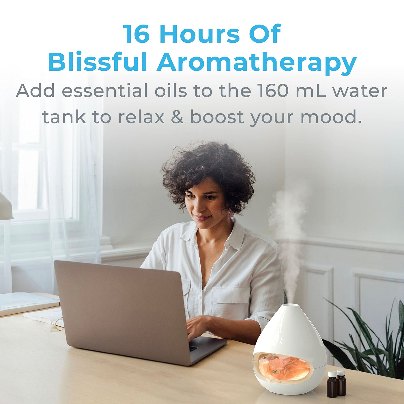 A first of its kind, the patented PureGlow Crystal from Pure Enrichment combines the therapeutic properties of a natural pink Himalayan salt rock lamp with the soothing aromatherapy of an essential oil diffuser. It’s the only true salt lamp on the market that actually heats up the salt rocks using a lightbulb in the base, offering the full benefits of halotherapy. PureGlow Crystal’s aromatherapy diffuser and salt lamp are designed to help boost your mood, increase energy levels and naturally contribute to healthier air. Create the perfect ambiance for relaxation at home, in your yoga studio, or spa with PureGlow Crystal. 2-In-1 Solution: Our patented salt lamp and essential oil diffuser actually heats up the rocks for natural salt therapy Warm Lighting: Enjoy a soft and soothing glow provided by the natural, handcrafted salt crystals that come with your diffuser The Perfect Gift: Whether it's for your friend, family, loved one or yourself, this thoughtfully designed unit makes an ideal gift for any occasion, especially holidays, birthdays, Christmas, anniversaries, and more! What's in the Box: 2-in-1 Himalayan salt rock lamp and essential oil diffuser, 3 10-watt halogen light bulbs, measuring cup, ETL-approved power adapter, user manual