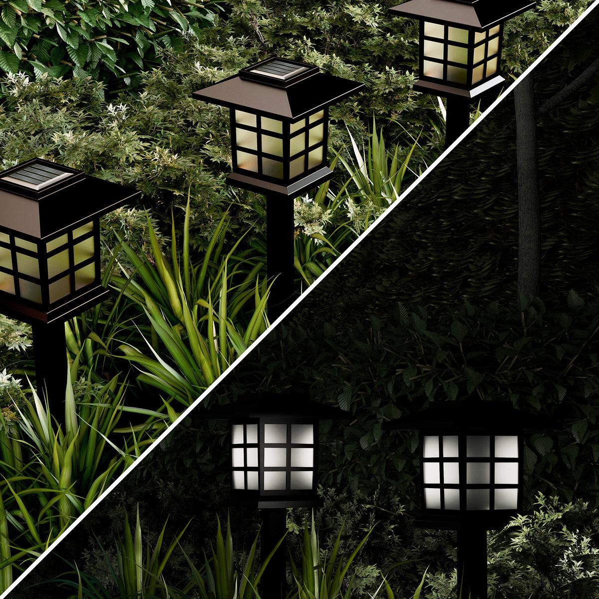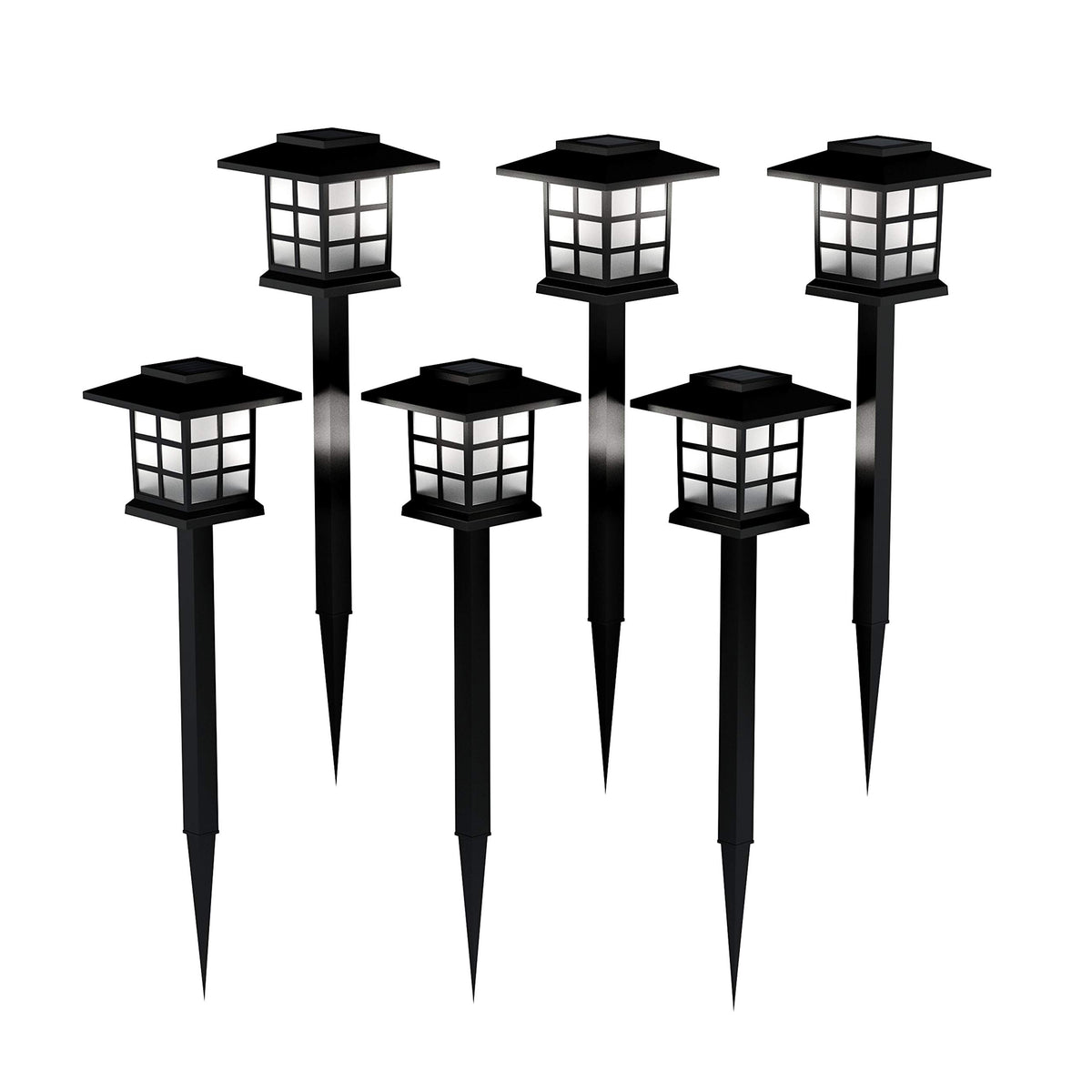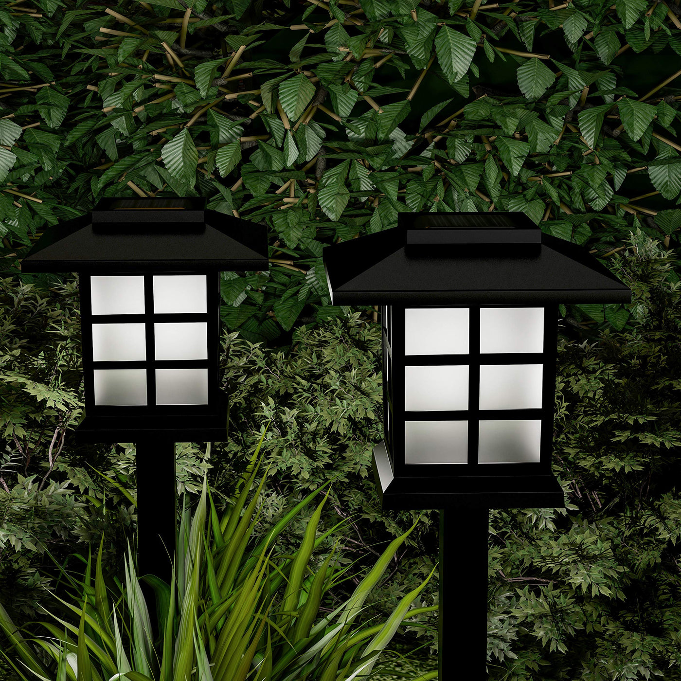 Pure Garden Solar Pathway Coach Lights - Set Of 6 Water-Resistant Outdoor Stake Lighting For Garden, Landscape, Patio, Garden, And Walkway (Black)