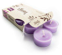 - **Vibrant Color & Design**: Each tealight comes in a clear container that beautifully showcases the rich purple hue of the candle, creating an eye-catching display in any decor setting.