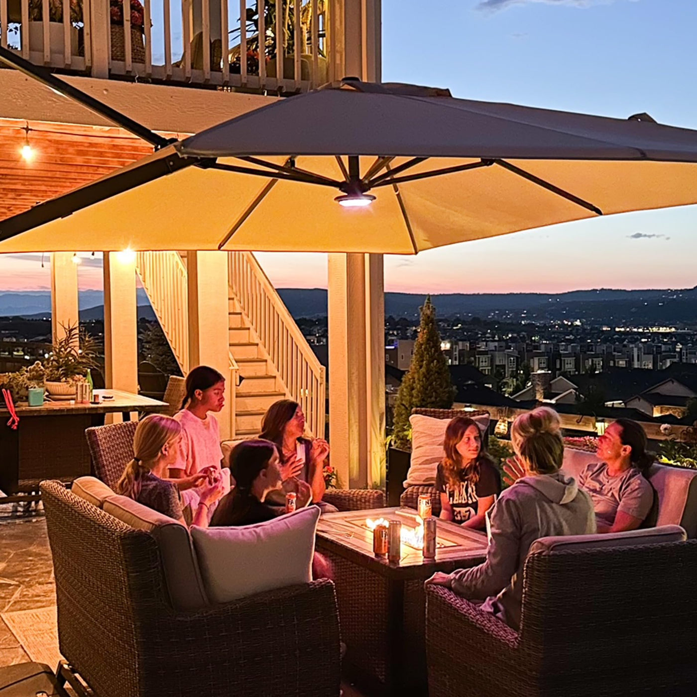 PURPLE LEAF Patio Umbrella Light with Remote Control Rechargeable with 12 Colors, Cantilever Umbrella Lamp Used for Camping Tent
