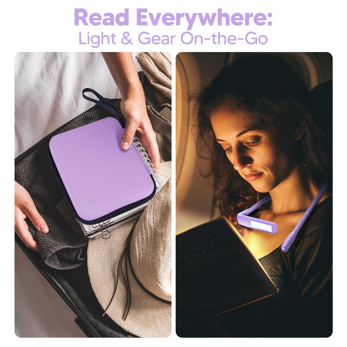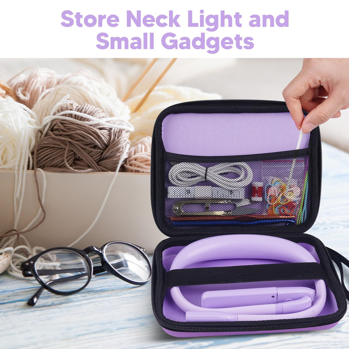 Purple Neck Light With Storage Case, 10-80Hrs Eye-Friendly Book Reading Light, Knitting Crochet Sewing Craft Light Rechargeable