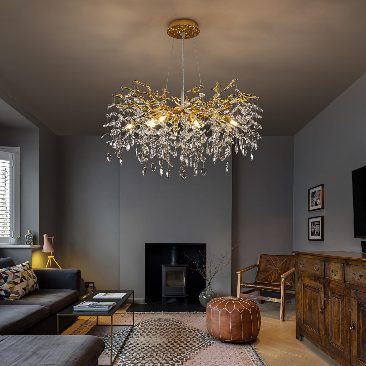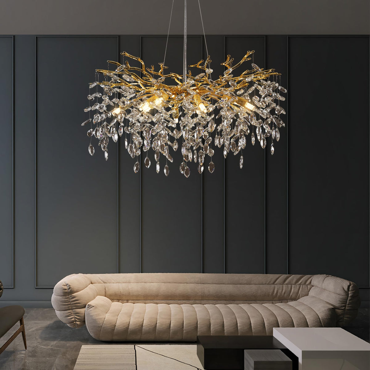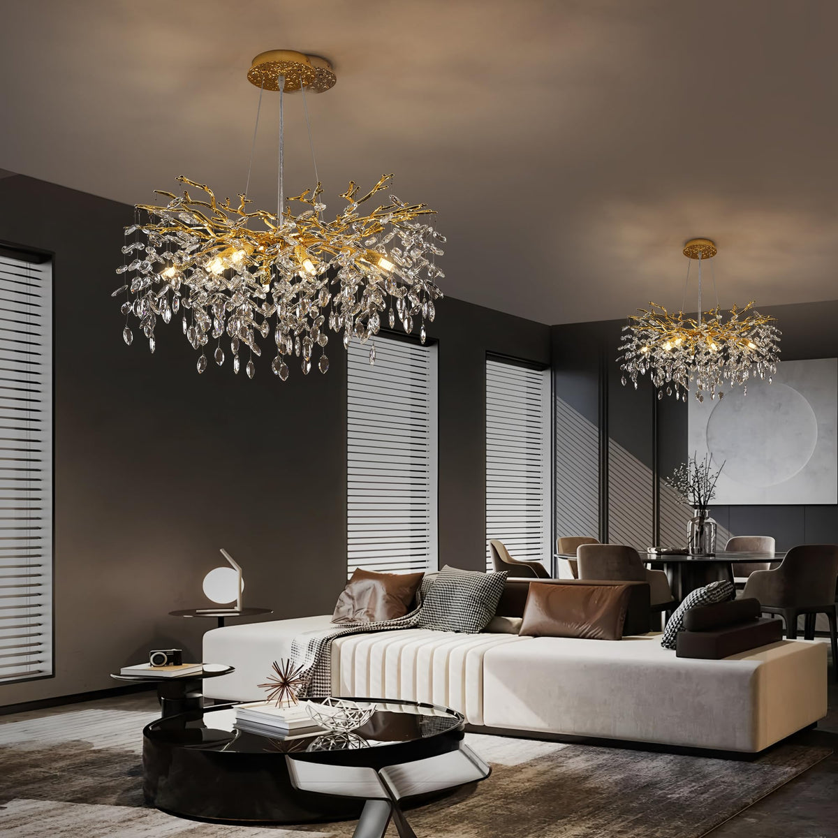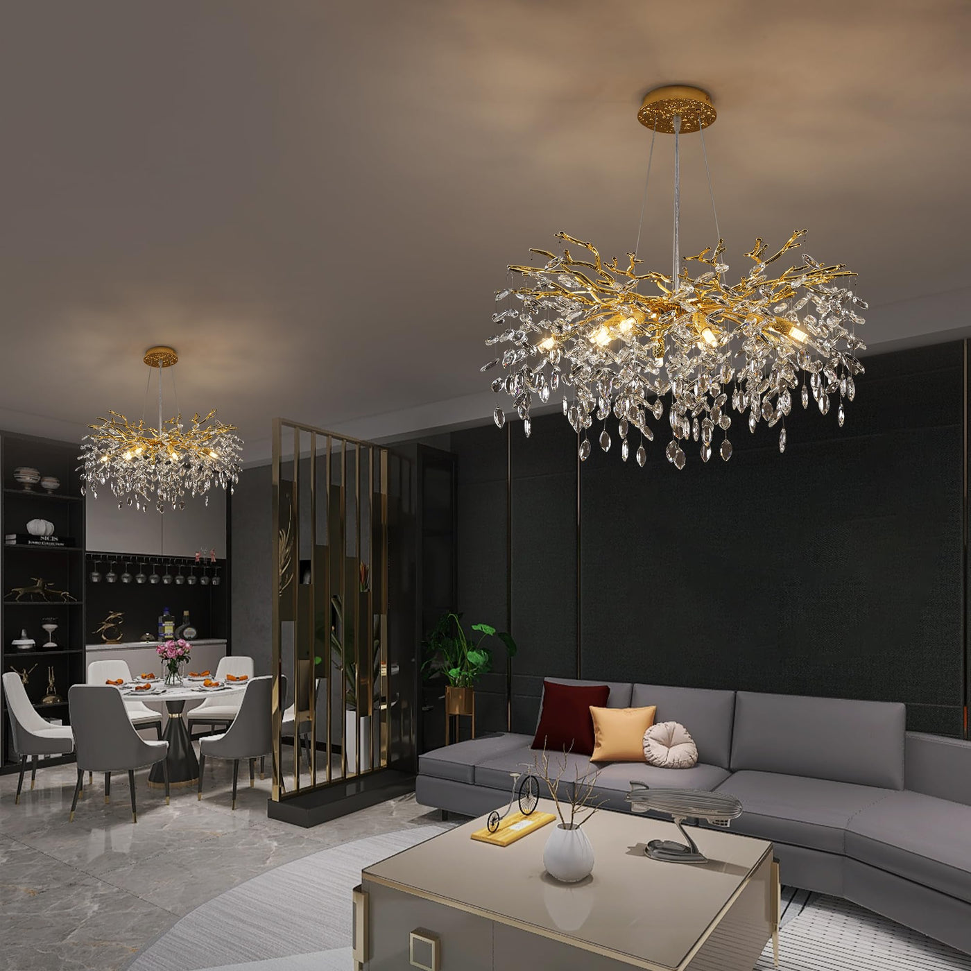 Puvaue Crystal Tree Branches Chandeliers Luxury Round Gold Hanging Pendant Light 10 Lights For Dining Room Bedroom Living Room E