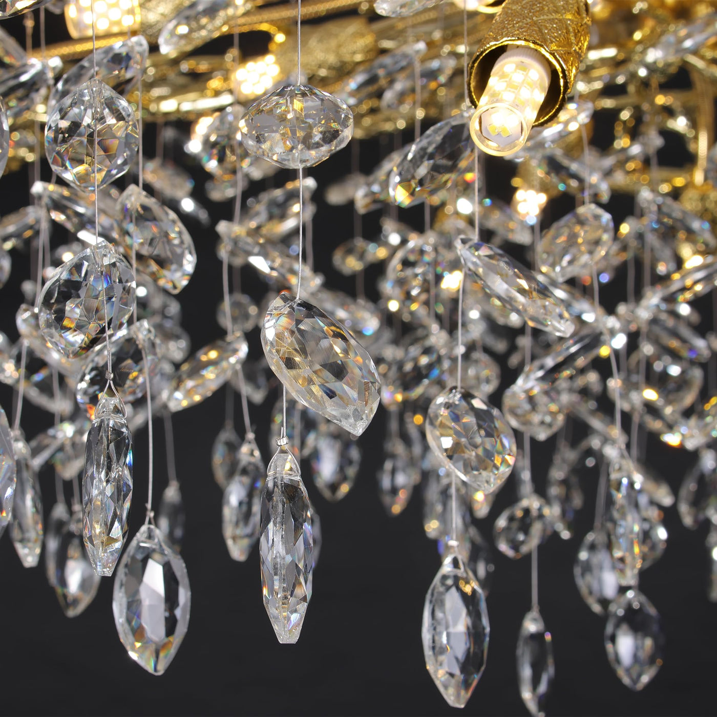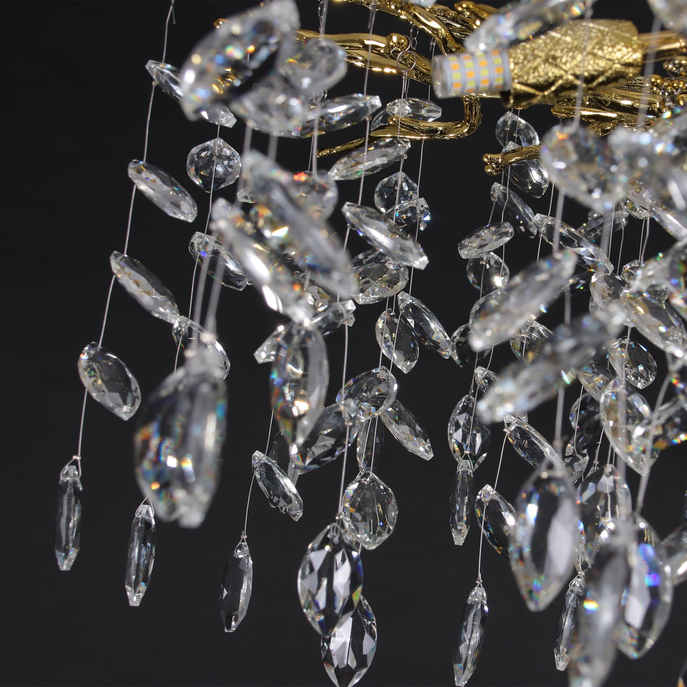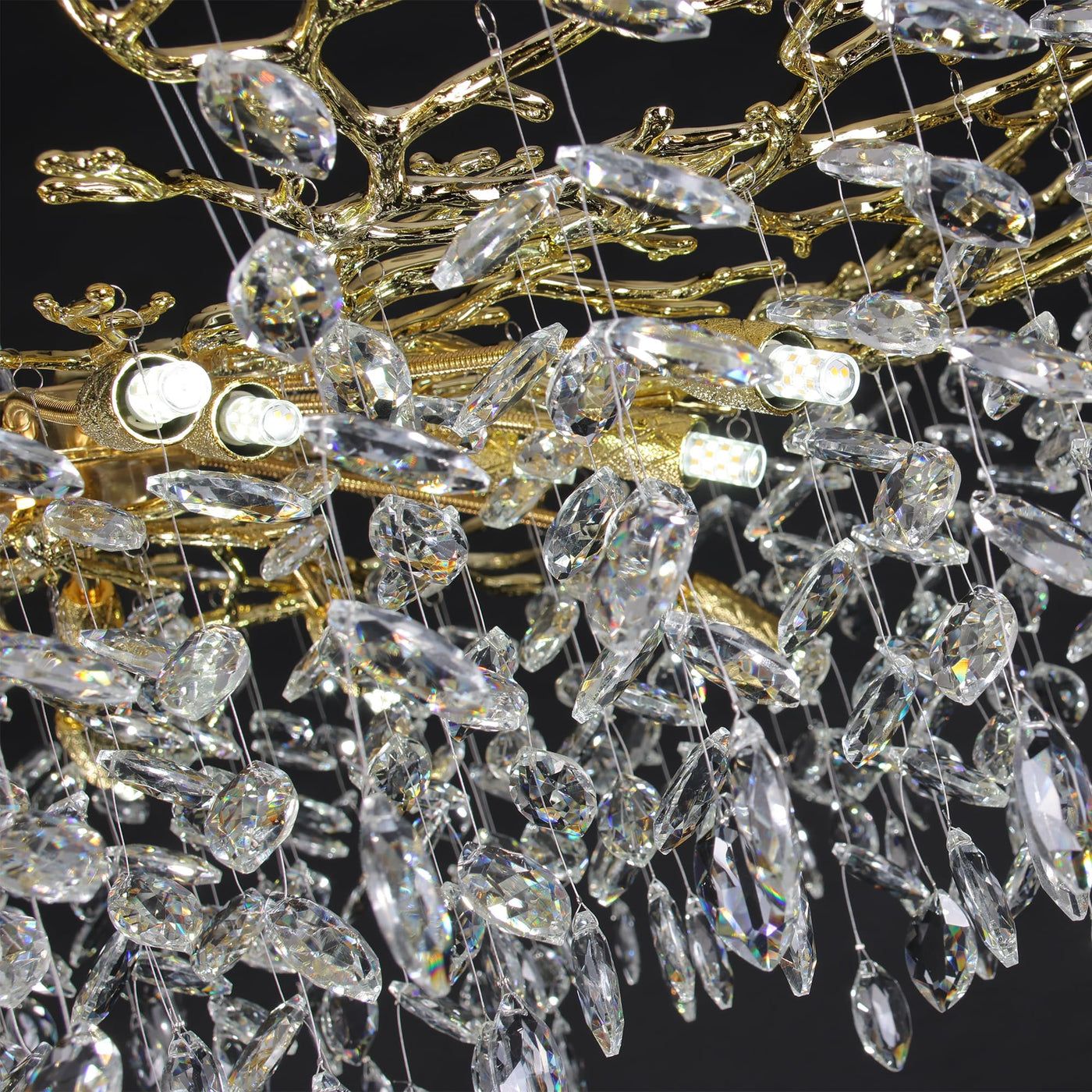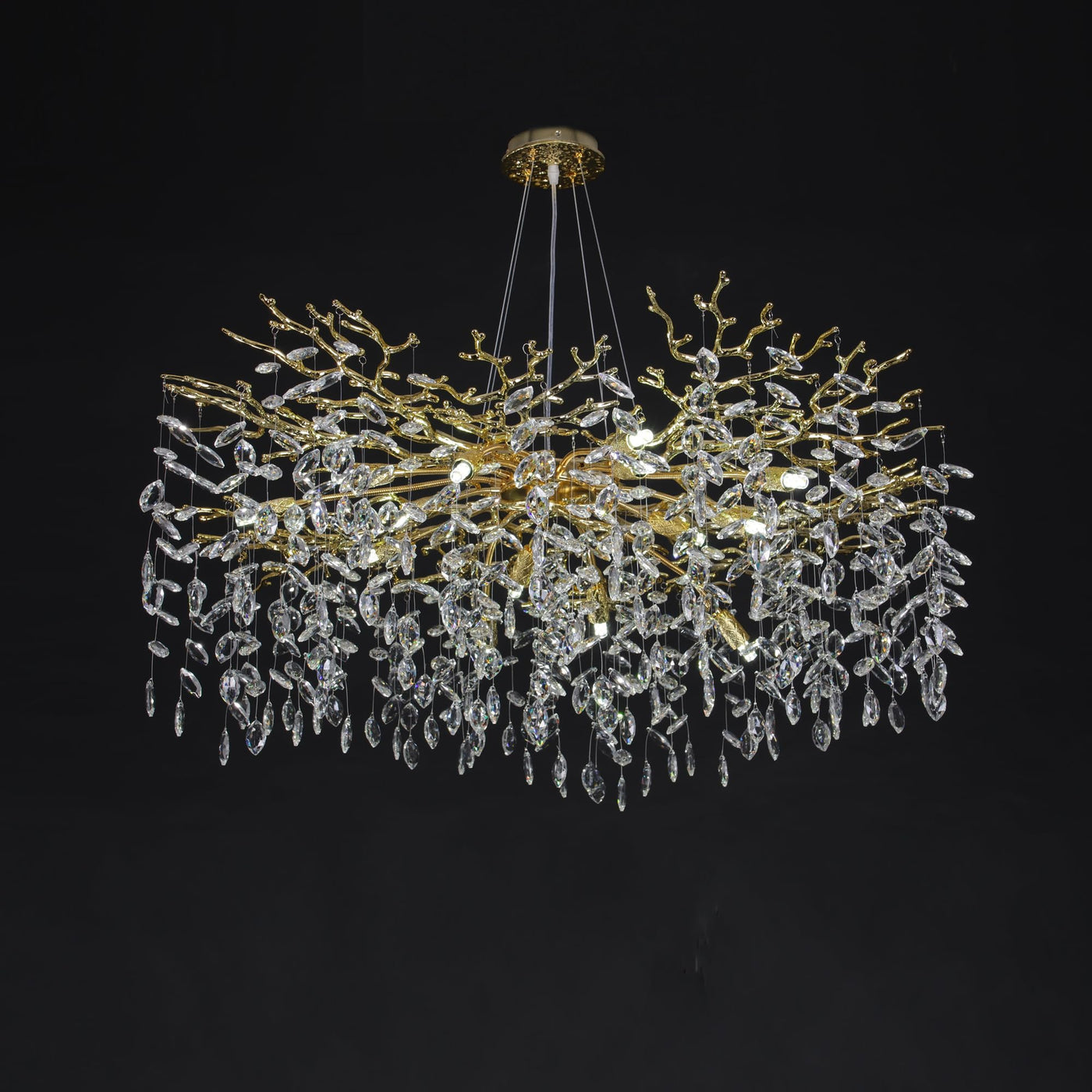 Puvaue Crystal Tree Branches Chandeliers Round Gold Raindrop Pendant Light Fixture 15 Lights For Dining Room Bedroom Living Room