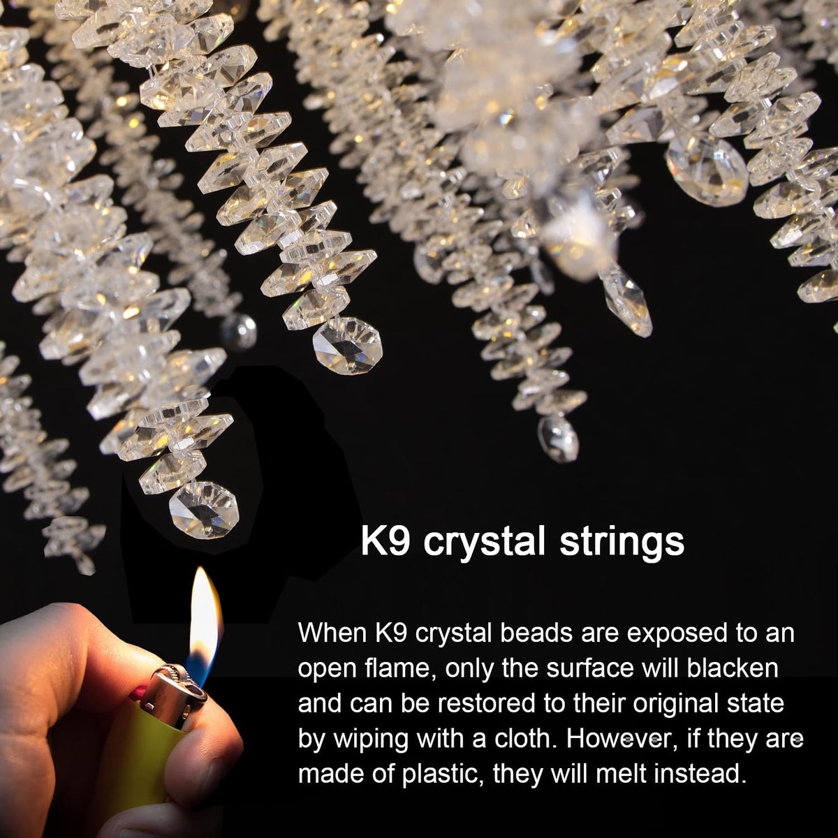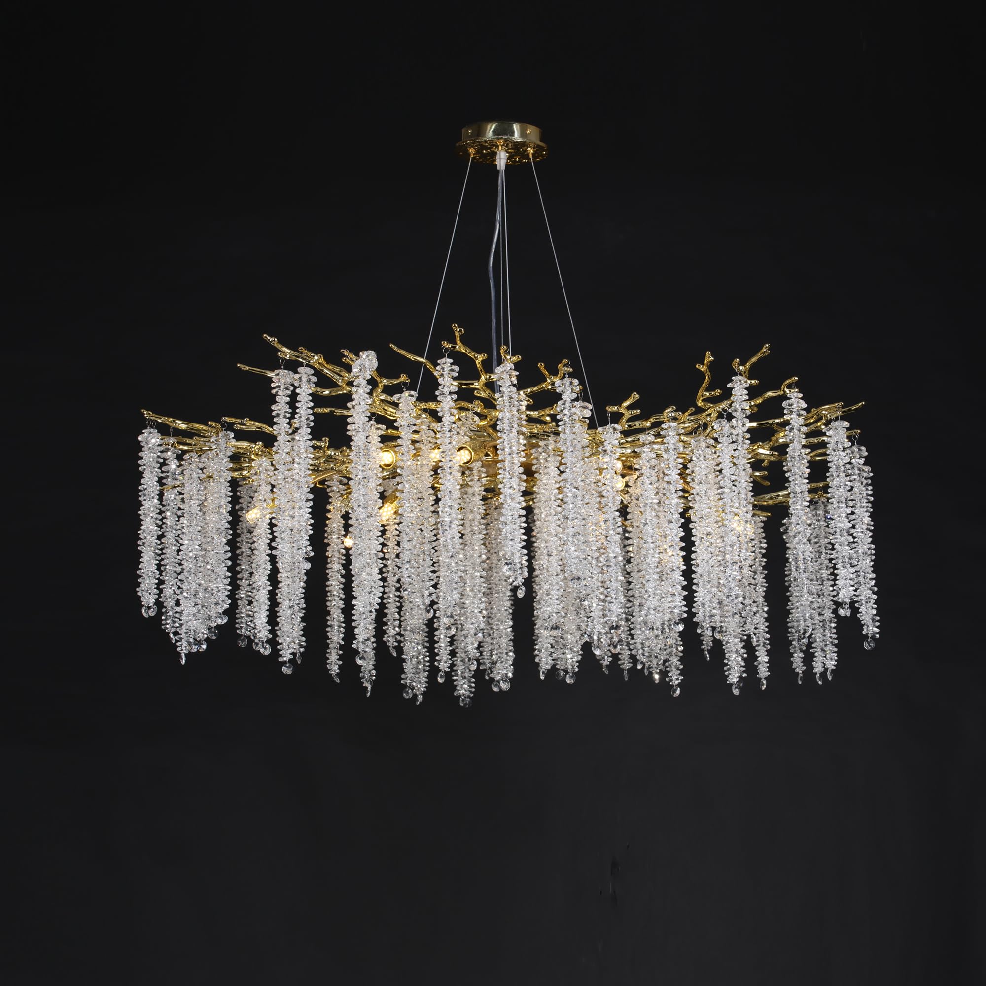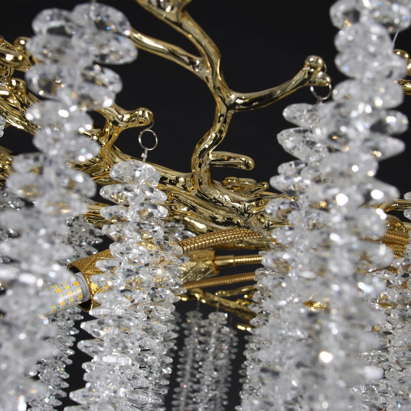Puvaue Tree Branches Chandeliers Luxury Round Raindrop Crystal Pendant Light 15 Lights Tassel Ceiling Hanging Light For Dining R