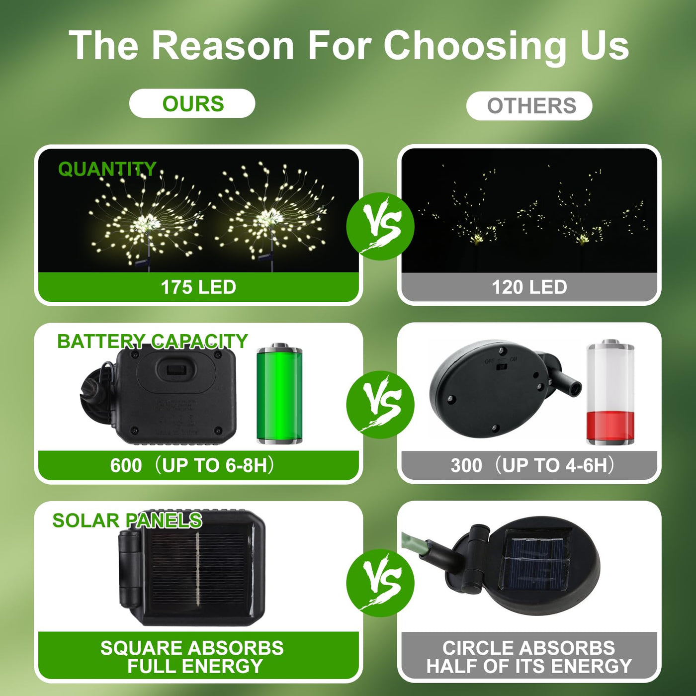 We are always looking for high quality products for our customers. I believe this solar lights will not let you down, we have been committed to providing customers with a good shopping experience!