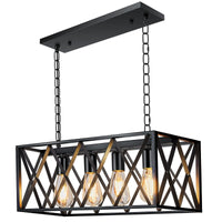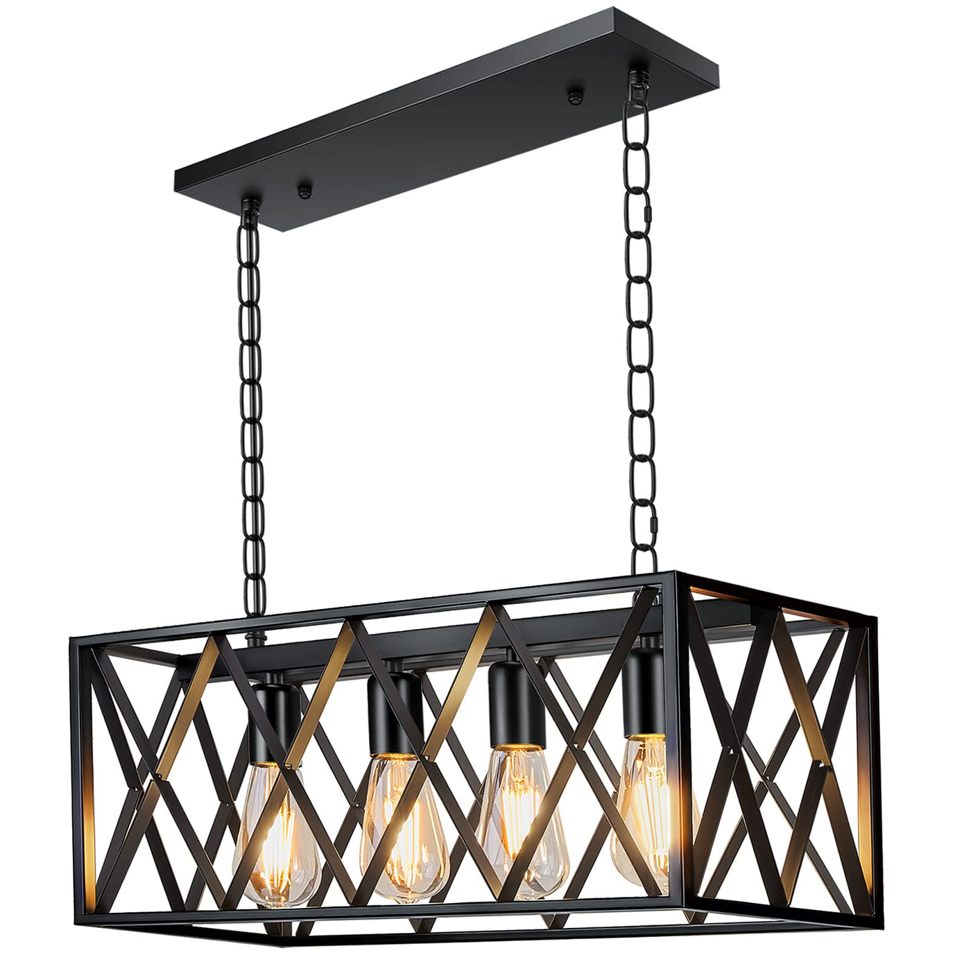 Industrial Kitchen Island Pendant Lighting Pynsseu Rectangular Vintage 4-Light Ceiling Hanging Light Fixtures