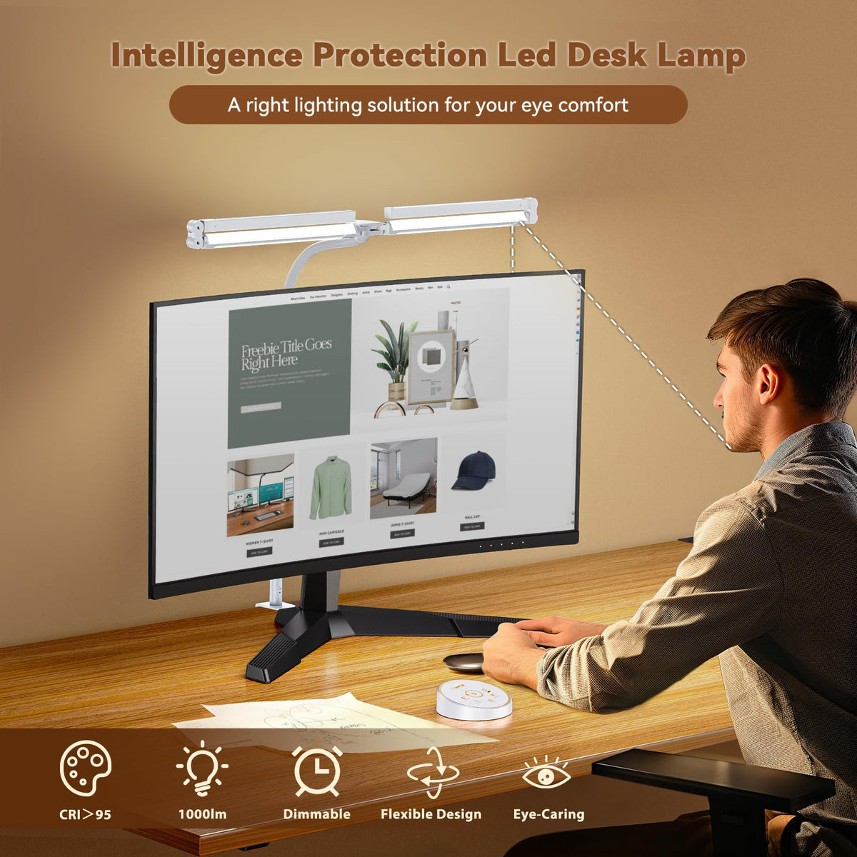 Pzloz Led Desk Lamp With Clamp: Architect Desk Lamp For Home Office, Eye Caring Double Head Computer Monitor Gooseneck Desk Ligh