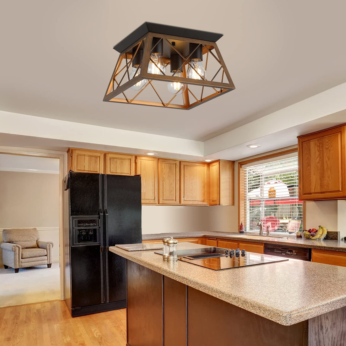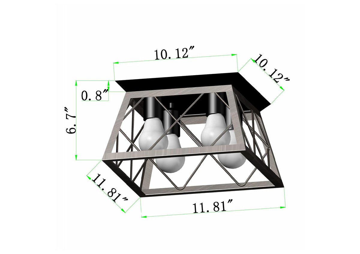 This Industrial vintage ceiling light features a striking geometric Bronze metal frame complemented by an ORB color network wire design. With a semi-open structure and four LED Edison Bulbs, this square light fixture brings a classic artistic charm to any space, making it a captivating addition to your home décor.