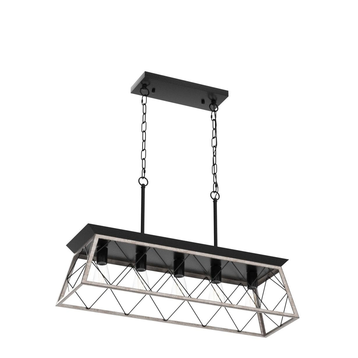 - **Lighting Parameters**: Designed for optimal positioning, the chandelier dimensions are Length: 31.5”, Width: 9.45”, and Frame Height: 8.66”. The maximum height reaches 67.34 inches, accommodating flat, sloped, slanted, and vaulted ceilings. Requires five E26 Edison retro light bulbs (not included), with LED options available in our store.