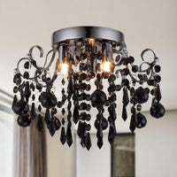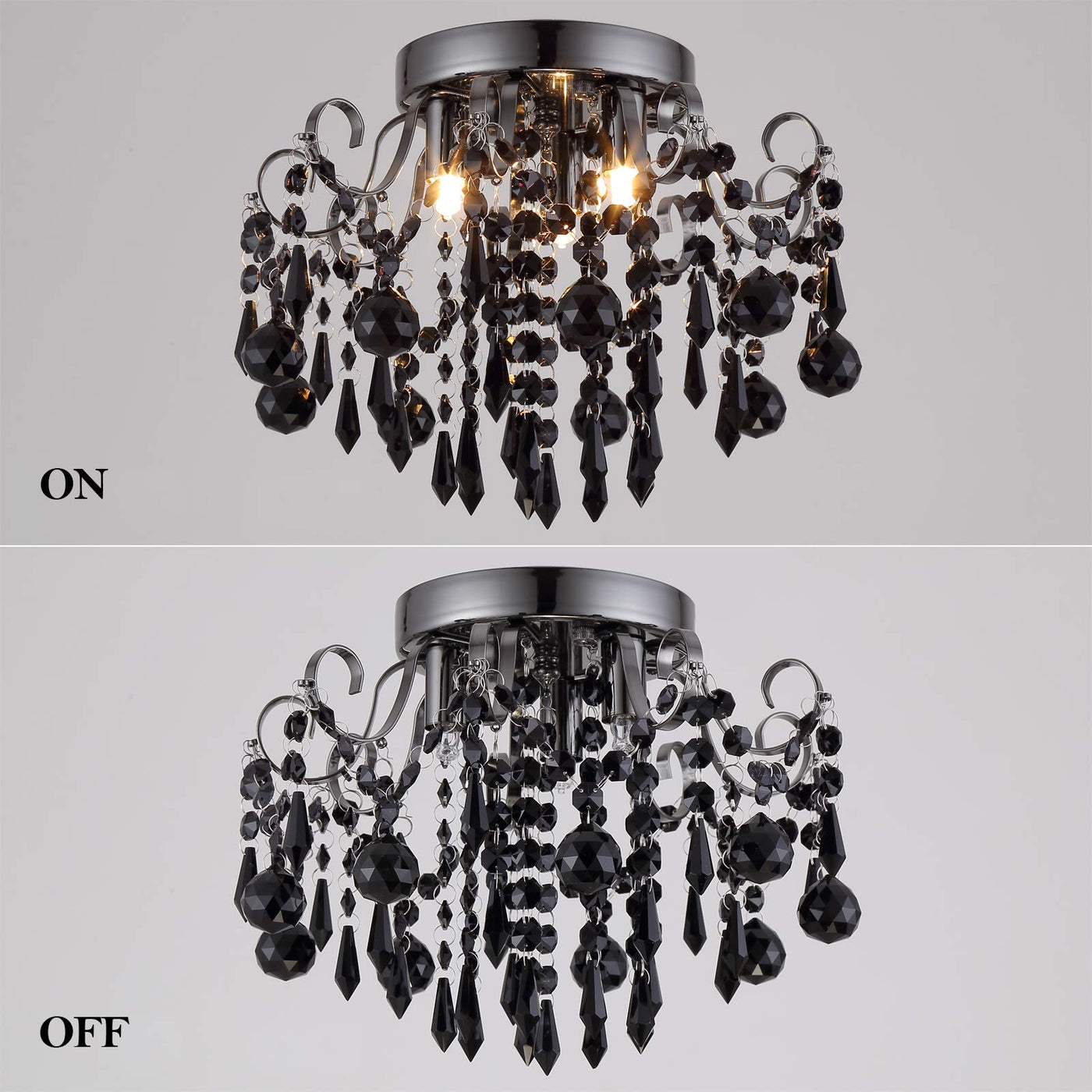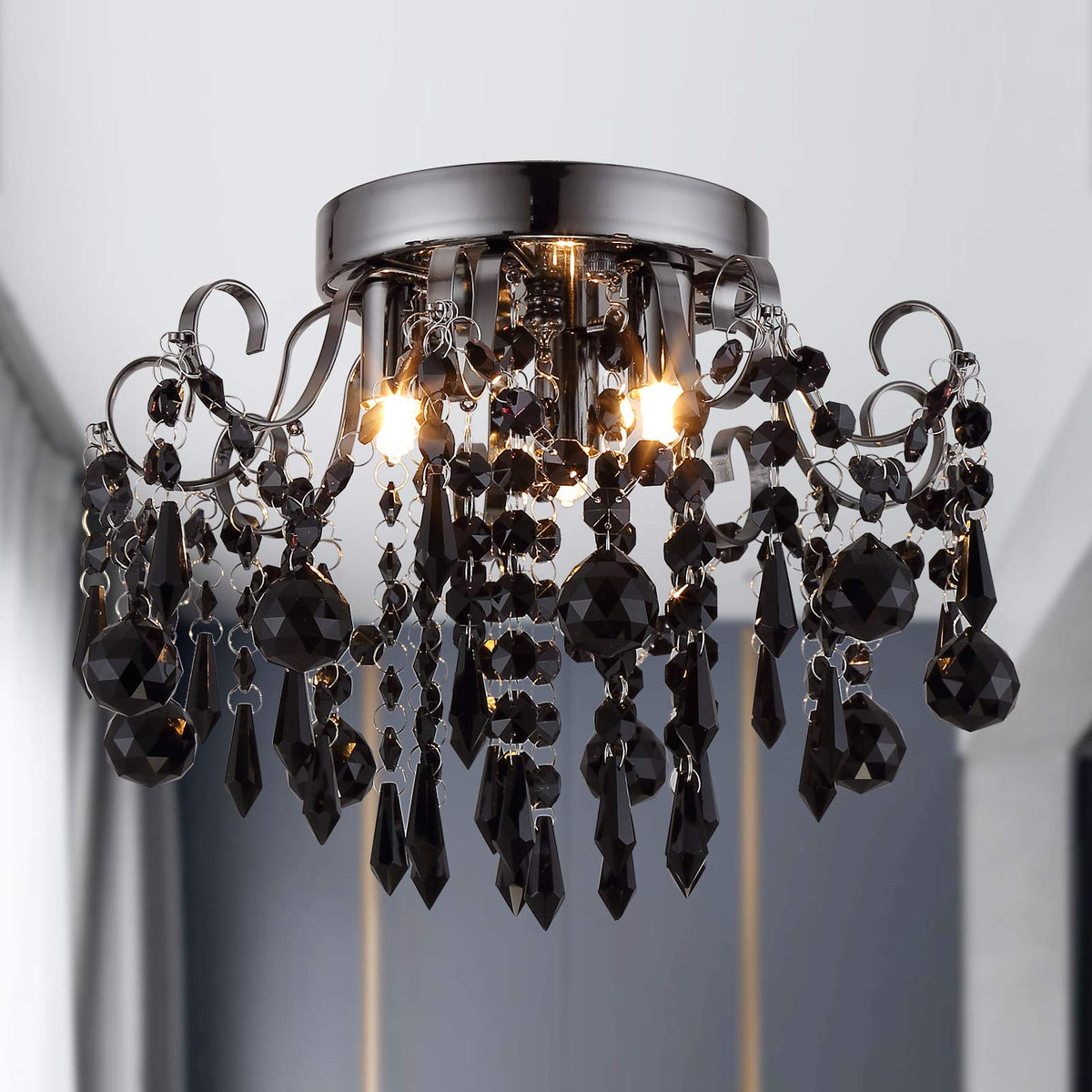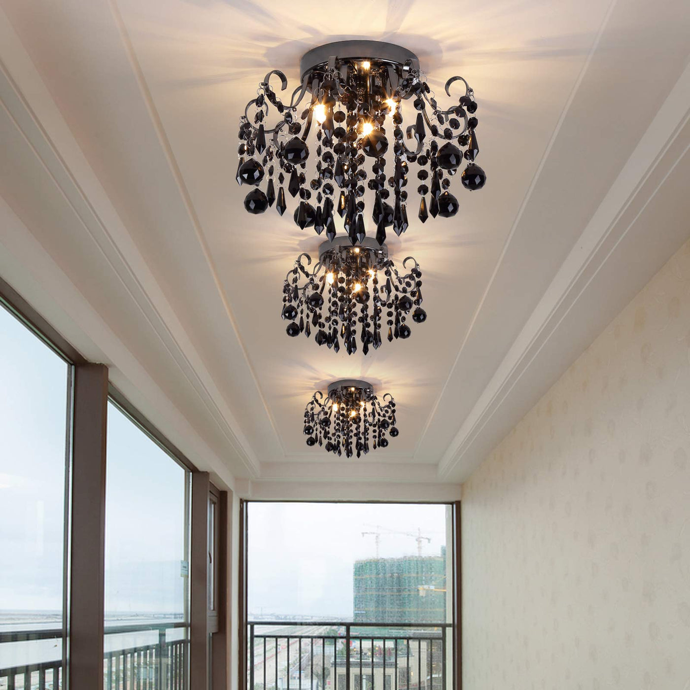 Q&S Black Crystal Ceiling Light Fixture, 3-Light Mini Chandelier For Bedroom, Hallway, Stairs
