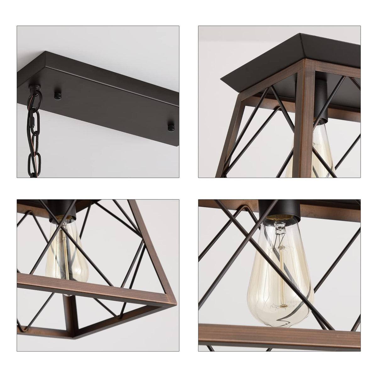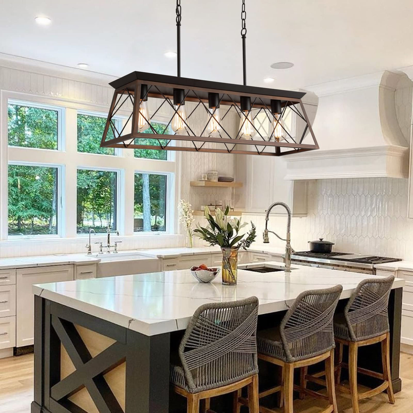 Q&S Farmhouse Rustic Chandelier Light Fixtures Bronze 5 Lights Linear Rectangular Chandelier Pendant Light Fixtures For Dining R