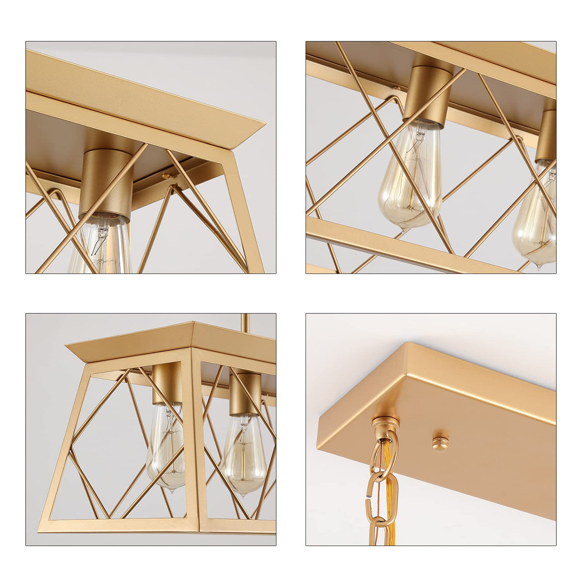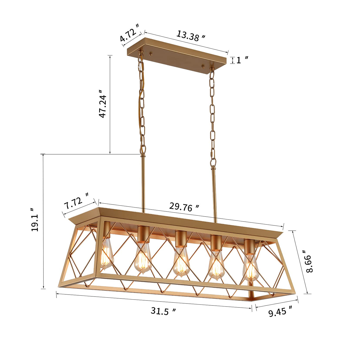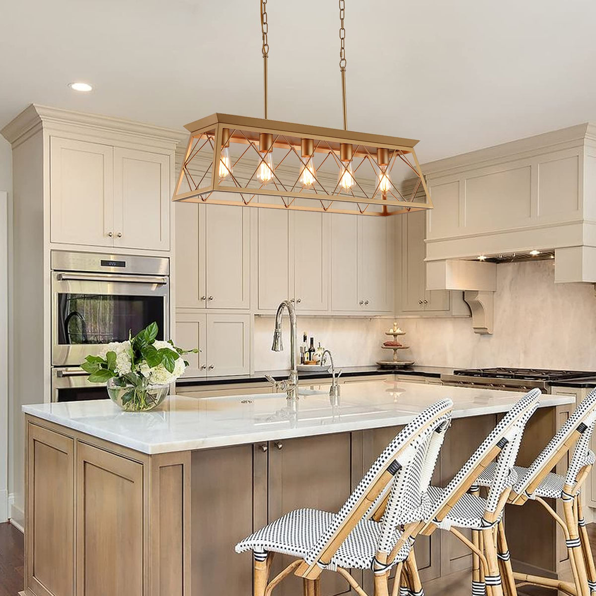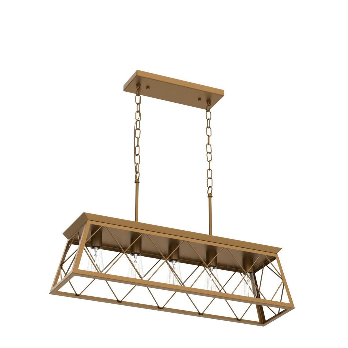 Q&S Modern Farmhouse Chandelier Light Fixtures,5-Lights Gold Linear Industrial Light Fixtures For Kitchen Island Bar Dining Tabl
