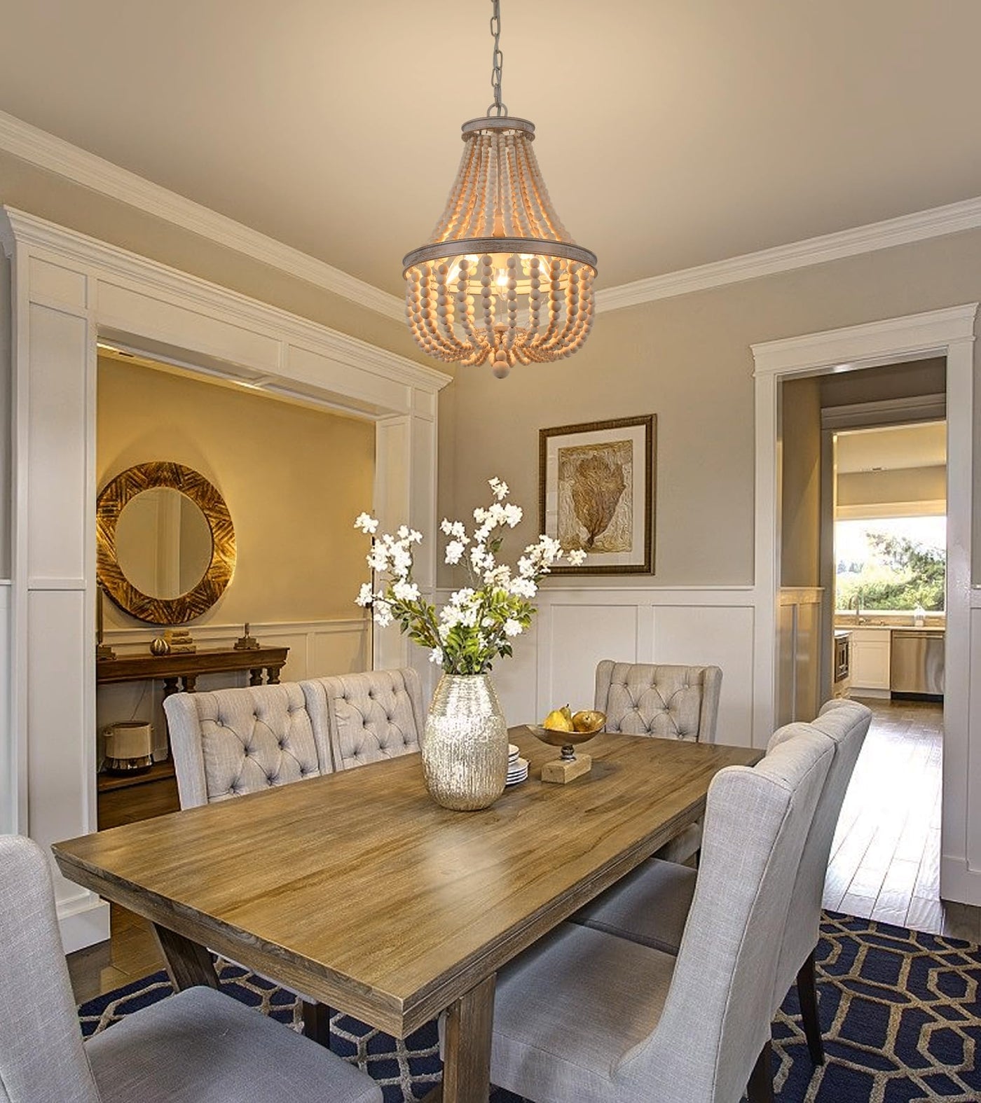 - **Versatile Applications**: Ideal for a variety of settings, this farmhouse beaded chandelier is perfect for dining rooms, nurseries, kids' rooms, kitchens, foyers, patios, and more. Make your purchase today and elevate your lighting experience across any area of your home.