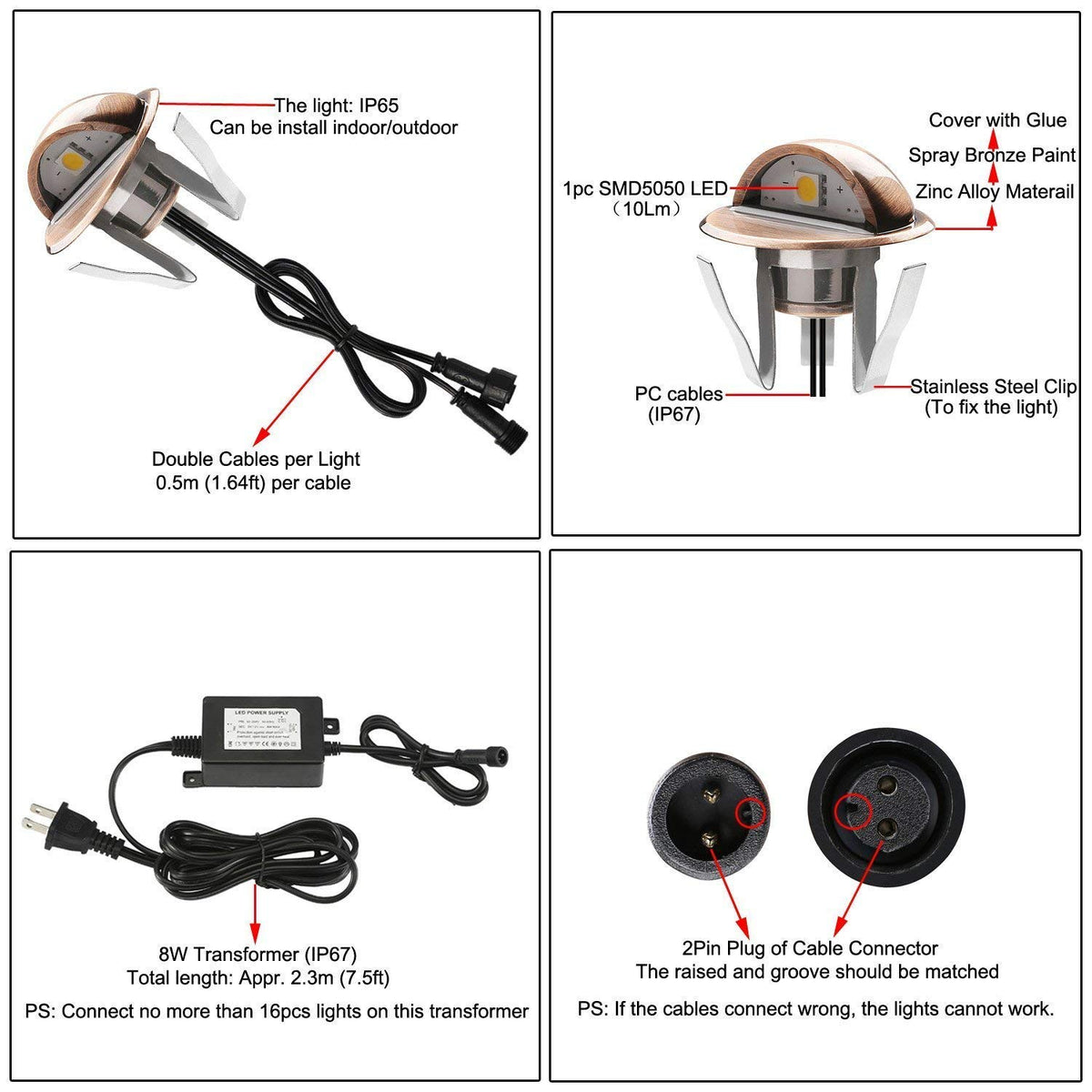 - **Easy Installation**: Comes with a complete package including 10 LED lights and an 8W power supply, with a maximum pressure tolerance of 220 lbs, ensuring secure placement on walkways or stairs.