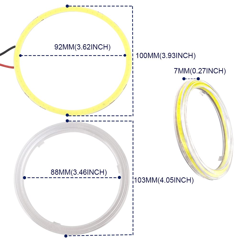 Qasim 1-Pair Super White 100Mm 72Smd Cob Led Halo Ring Angel Eyes Led Headlight With Lampshade Cover 12V 24V