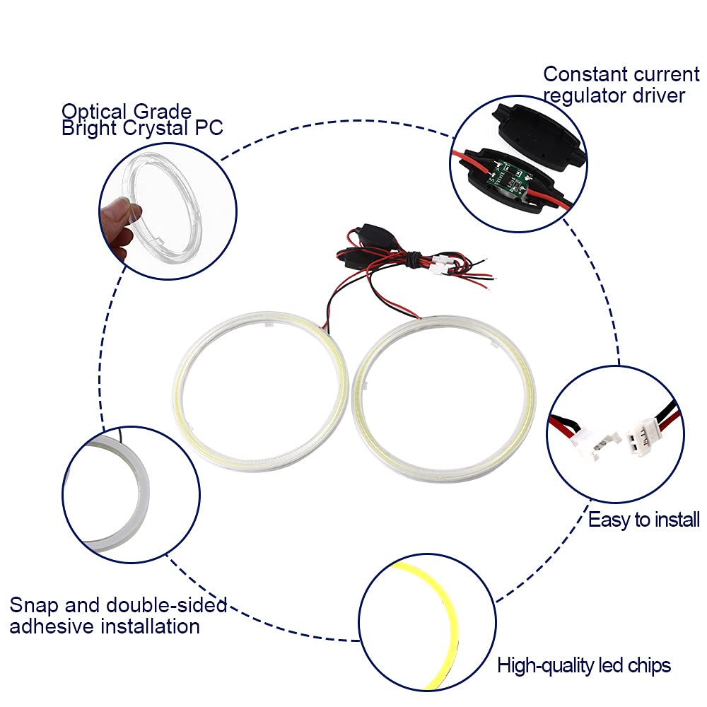 Package included: 2Pcs COB LED Angel Eyes Halo Ring Light