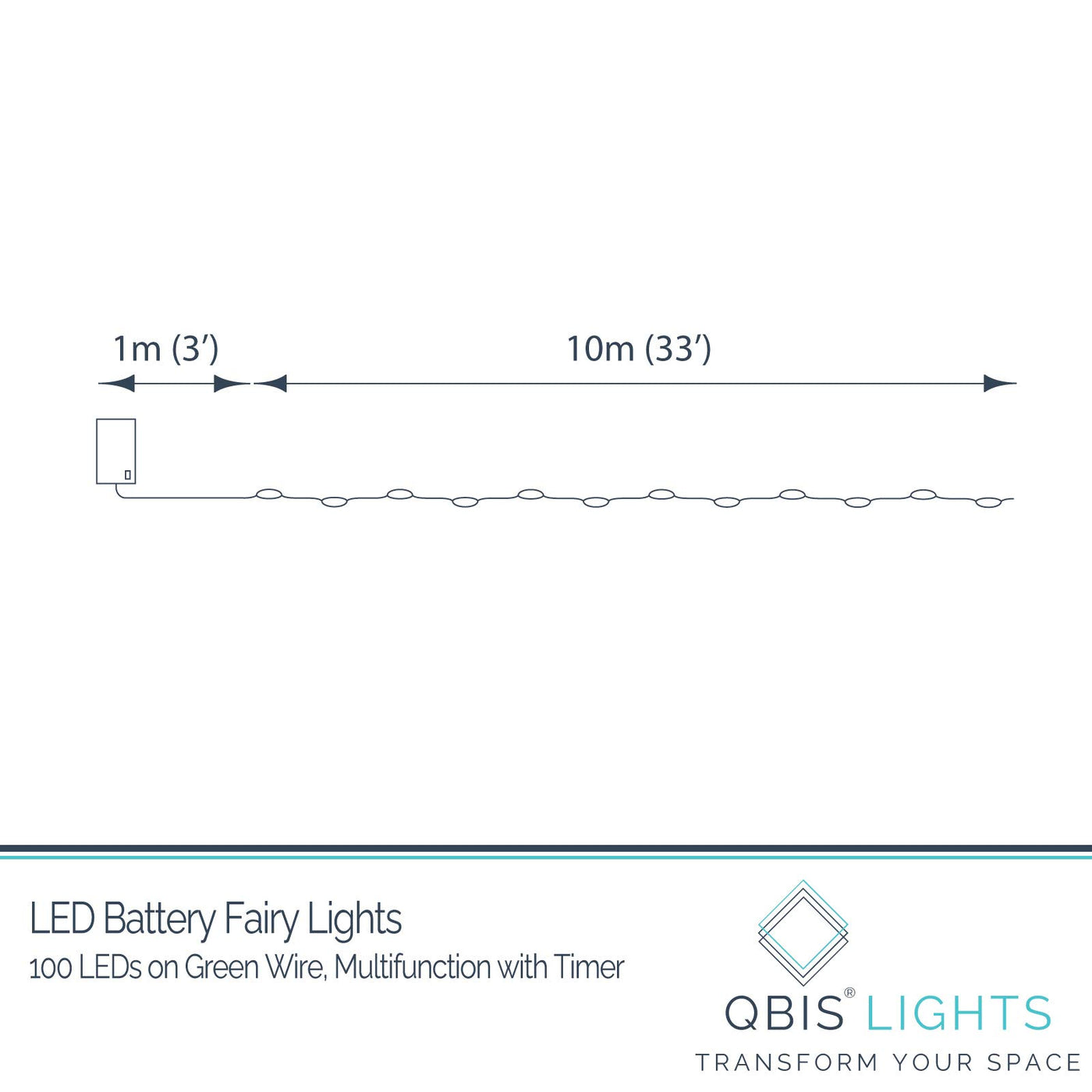 Transform your holiday decor with our QBIS 100 LED battery operated outdoor Christmas lights. These versatile lights are perfect for creating a warm and inviting atmosphere both indoors and outdoors. Featuring warm white Christmas lights battery operated on a thin green wire, they effortlessly blend into foliage, making them ideal for wrapping around your Christmas tree, wreath, garland, or decorating your porch, patio, or garden. Designed for convenience, these battery powered Christmas lights come equipped with a built-in 8-hour timer, automatically turning your Christmas lights battery operated on and off each day. Simply set the timer once, and enjoy hassle-free illumination around your home, enhancing wreaths, garlands, or framing windows and doors with festive charm. Enjoy ultimate customization with 8 lighting modes, including steady on, wave, sequential, slo-glo, chasing/flash, slow fade, twinkle/flash, and combination. These battery operated Christmas lights warm white allow you to create the perfect ambiance for any occasion, whether it’s a cozy family gathering or a festive outdoor party. Power these lights with 3 AA batteries (not included) for easy installation anywhere, without the need for a power outlet. Ideal for both indoor and outdoor use, these battery operated outdoor string lights offer flexibility for decorating a variety of spaces. With 33 feet of lights and an additional 3-foot lead wire from the battery pack, you have ample length to illuminate larger areas, from trees to entryways. Built to withstand the elements, these outdoor string lights battery powered are waterproof, making them perfect for year-round use, rain or shine. Add a touch of magic to your outdoor spaces with durable twinkle lights battery operated that brighten your evenings with enchanting displays. At QBIS, we prioritize exceptional customer service as a dedicated US company. We're committed to ensuring your satisfaction and are always ready to assist with any inquiries. Let our battery operated Christmas lights elevate your holiday decor and create unforgettable memories with family and friends.