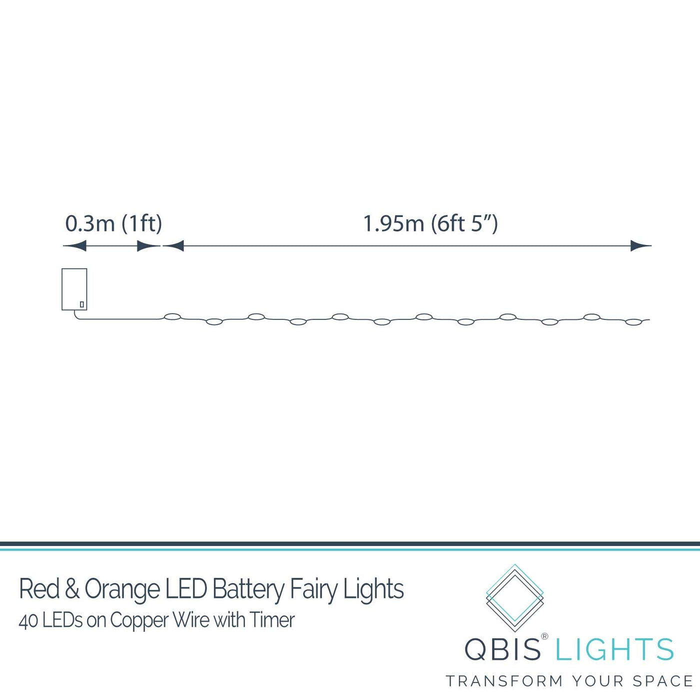 Qbis Battery Powered Fairy Lights For Bedroom, 40 Led Lights, Battery Operated String Lights For Christmas, Halloween Decorations, 6Hr Timer Mode, Red, Orange, Yellow Fairy Lights
