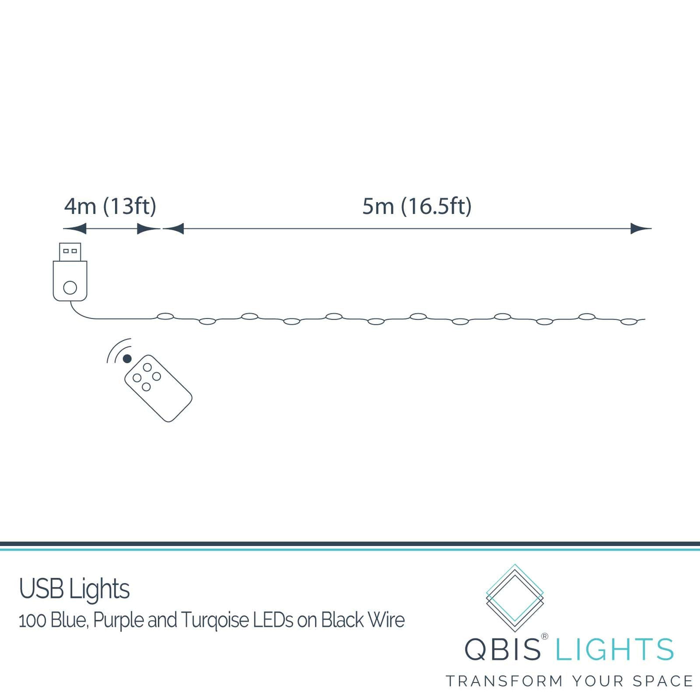 Qbis Turquoise, Purple And Blue Christmas Lights. 100 Micro Led Fairy Lights On Black Wire With Usb Plug, Timer, Multi Function And Adjust Brightness, Usb Fairy Lights If You Want Something Different.