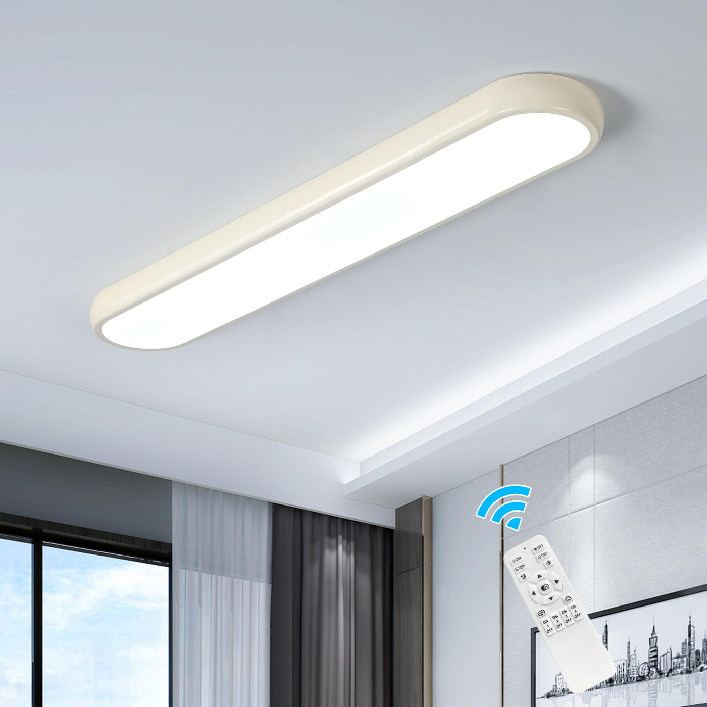Qcyuui Dimmable Led Ceiling Light With Remote 39.4 In Long Ceiling Light Fixture Modern Flush Mount Ceiling Lamp Kitchen Lighting Fixtures Ceiling For Office Bedroom Hallway(Cream/48W)