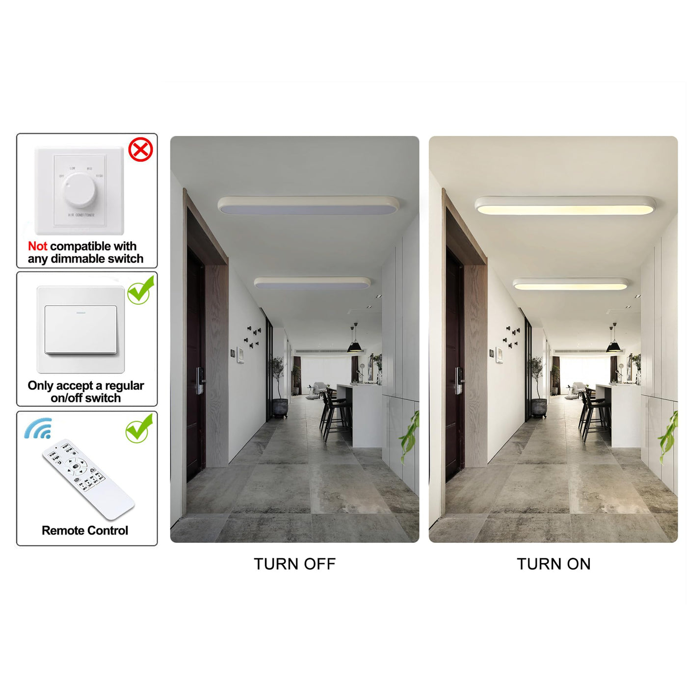 Worry-Free Service: If You Have Any Question Please Feel Free To Contact Us And Best Customer Service Always Ready For You! Benefits And Features: High Color Rendering Performance Our Products Uses International High-End Chip Brands The Chip Performance Is Guaranteed. Show The Color Characteristics Of Things Better And Improve Visual Experience Greatly. Unique Led Linear Ceiling Light Design Dimmable Ceiling Light Designed In Unique Flatted Oval Structure Shape Add More Fashion Elements To Your House Blends With Most Types Of Home Decoration Style. Durable Material Linear Led Ceiling Light Made Of enhanced Acrylic And Metal Which Has The Characteristics Of High Temperature Resistance Anti-Corrosion Anti-Faded Not Easy To Scratch And Easy To Clean Uniform Light Transmission Light Transmittance Up To 95% Not Dazzling. Energy Saving Built-In Led Light Strip The Color Temperature (3000K-6500K)And Brightness (0%-100%) Can Be Adjustable. Specifications: Material: Acrylic And Metal Fixtures Dimensions:Light Body: 39.4(L)X7.1(W)X2.17 (H)Inchessytle: Modern Ceiling Lighting Power Source: Ac Working Voltage: 110V-260V Wattage: 48W Color Temperature: 3000K-6500K (White Light(6500K) Neutral Light(4000K) Warm Light(3000K)) Cri: Ra=80 Recommendations: Our Dimmable Led Ceiling Is Suitable For Many Kinds Of Places! In Life You Can Use It In Closet Hallway Cloakroom Kitchen Bedroom Studios Garages Warehouses Or Kitchens Living Rooms. In Business It Can Be Used In Window Displays Brand Stores Showrooms Clothing Stores Museums Shopping Malls Etc. Tips: Please Disconnect The Power Before Installing Replacement Products.