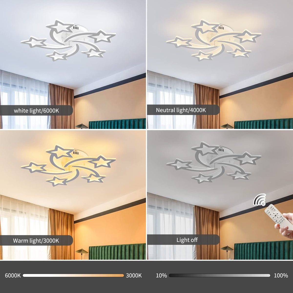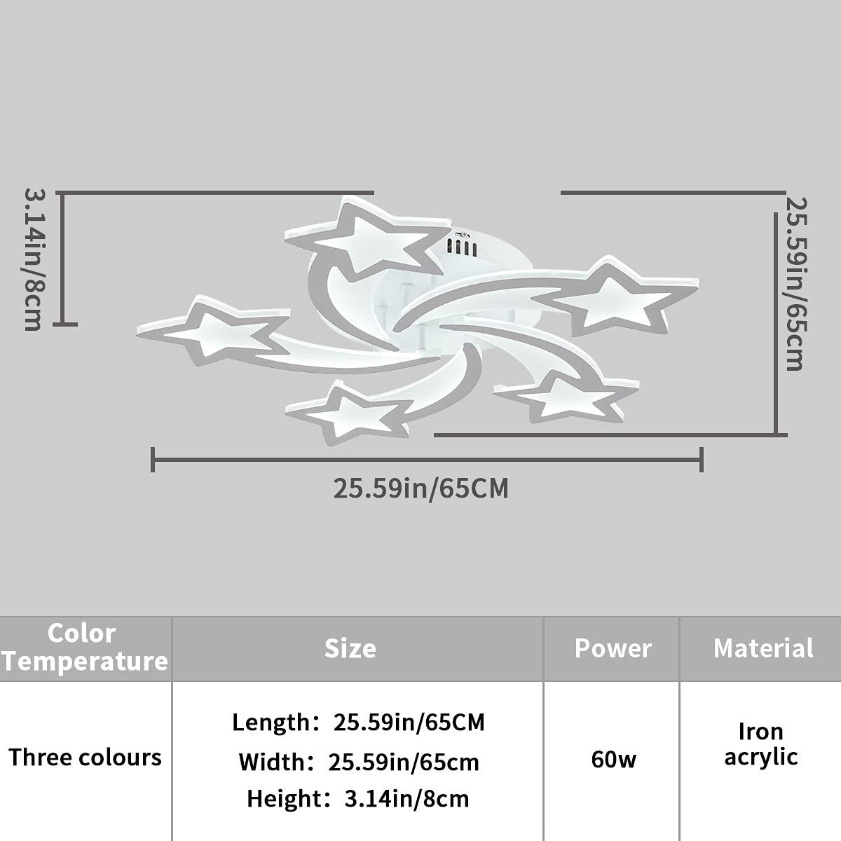 Qcyuui Dimmable Led Ceiling Lights,60W Modern Acrylic Chandeliers,5 Lights Head Star Shape Ceiling Lamp With Remote Control Flus