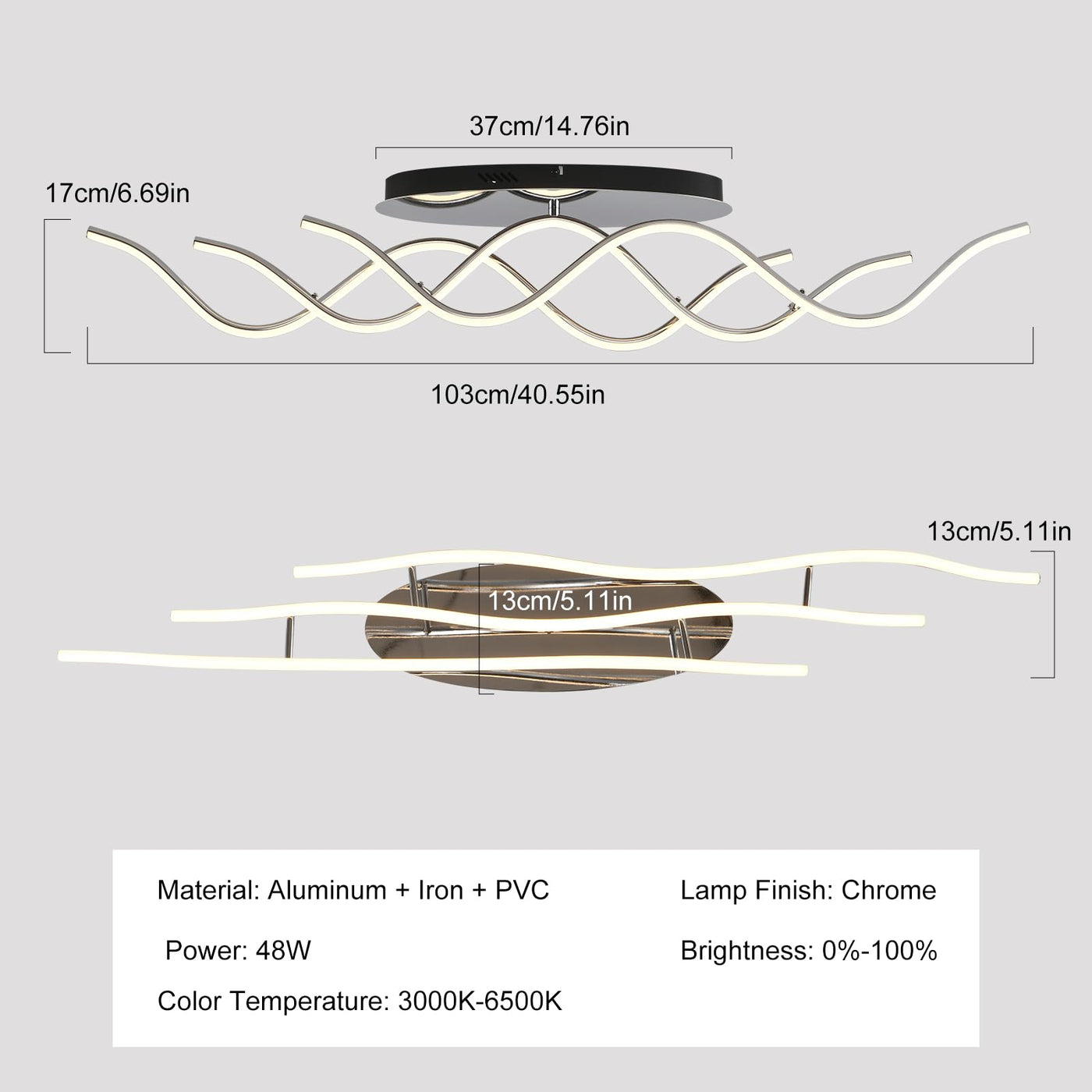 Constructed from well-made materials, including aluminum, iron, and PVC, this ceiling light features a chrome-plated finish that adds a touch of elegance to your home. With dimensions of 40.55 inches in length, 5.11 inches in width, and 6.69 inches in height, it is perfectly sized for larger rooms while providing powerful illumination with a brightness of 3200 lumens and a power consumption of 48W.